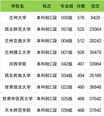 而甘肃物理类收分门槛较高、报考难度较大的公办一本有兰州大学(030组576分)、西北师范大学(057组525分)、兰州交通大学(004组512分)等。