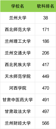 本文以软科2024年大学全国排名为参考依据,列举甘肃内一本院校的全国排名情况,其中排名前5的分别为: