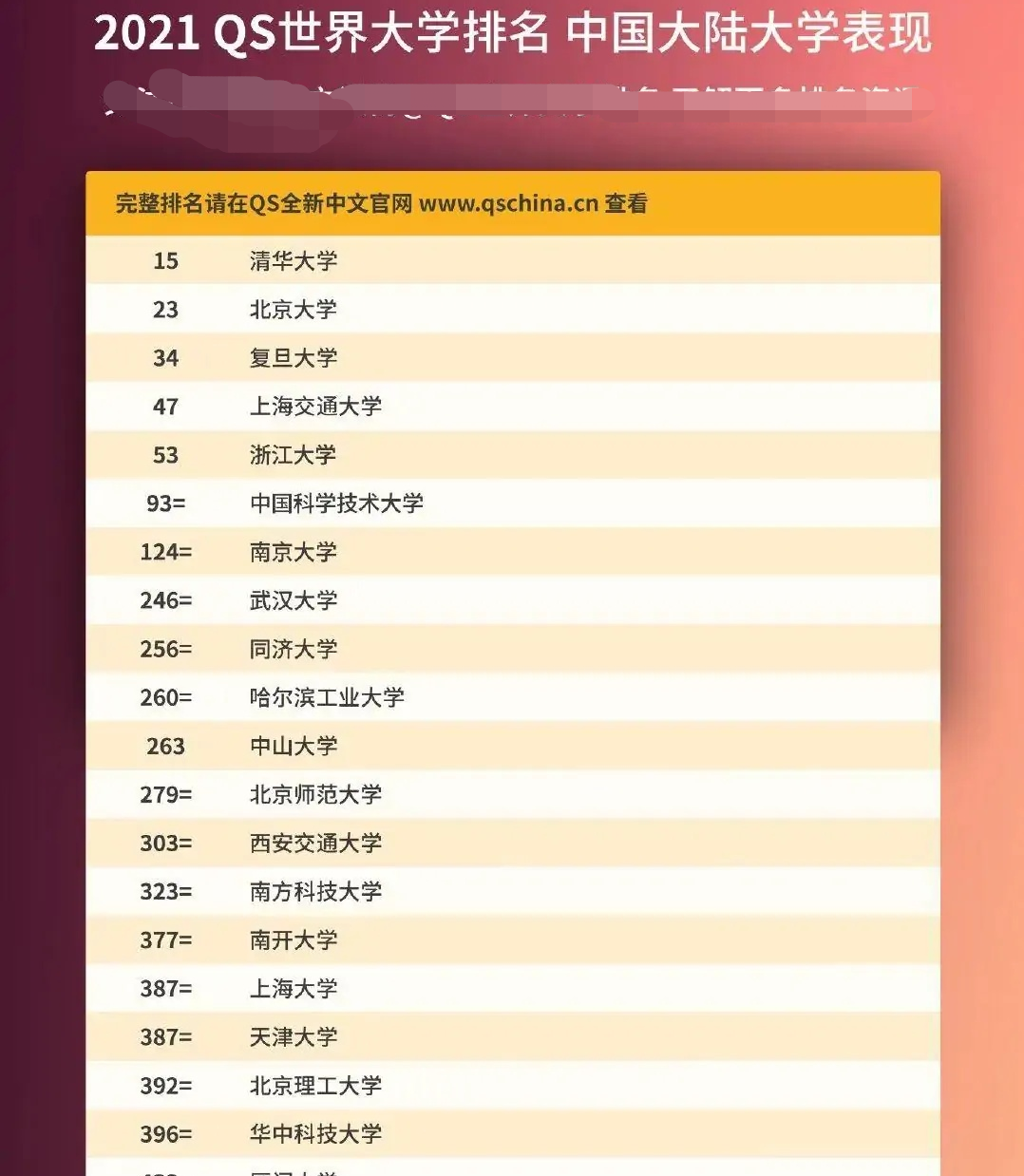 在2021年QS世界大学排名里中国科学技术大学在中国大学中排在第6,在世界大学排名中则排在第93位。