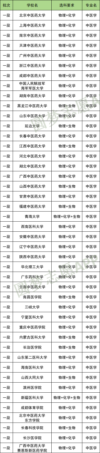 二、中医专业各大学选科要求