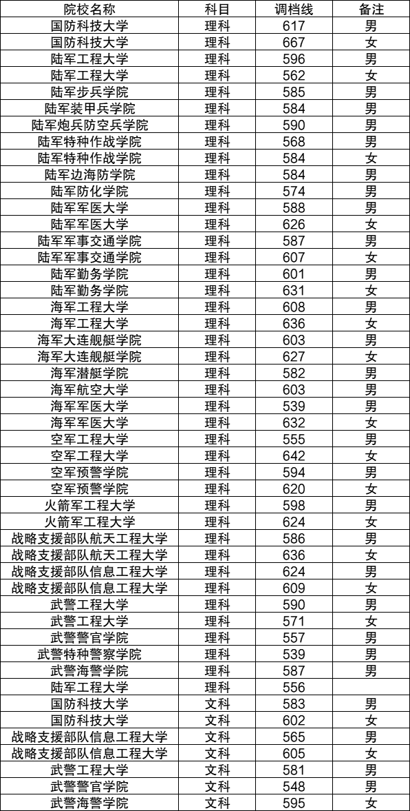 目前已公布的有军校(调档线)、警校(调档线)、国家公费师范生(调档线)最低分,以下会分别介绍。