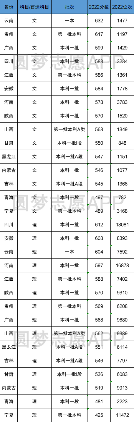 在沿用旧高考模式的15个省份中,中国海洋大学文科录取分数线最高的是云南(632分,1477名),录取分数线最低的是宁夏(489分,3168名)。理科录取分数线最高的是四川(612分,13801名),录取分数线最低的是宁夏(425分,11472名)。