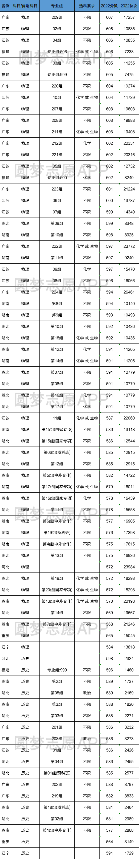 在采取“3+1+2”模式的8个省份中,中国海洋大学在首选物理的批次中录取分数最高的是广东(607分,17257名),录取分数最低的是重庆(565分,15045名)。首选历史的录取分数线最高的是河北(598分,2324名),录取分数最低的是重庆(564分,3149名)