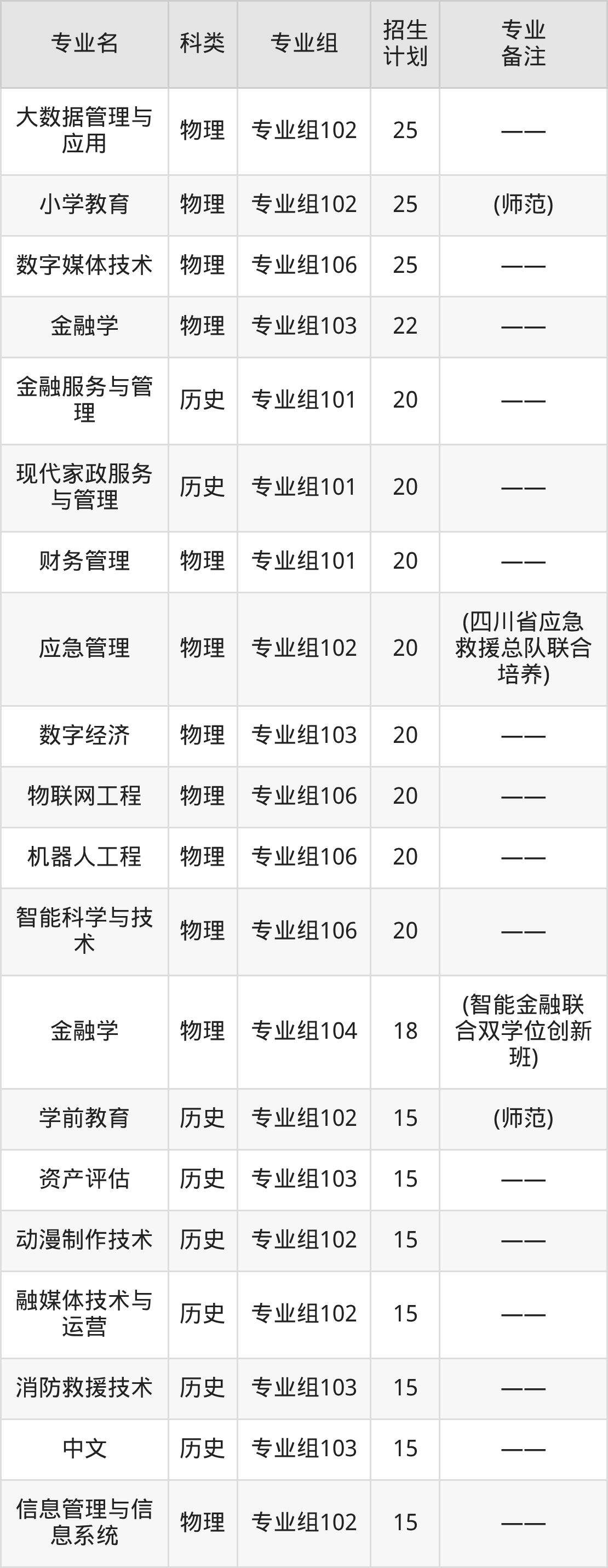 值得注意的是,西南财经大学天府学院在本科批、专科批招生,招生类型为历史类、物理类。篇幅有限,这里仅附上西南财经大学天府学院在四川省内招生计划详情: