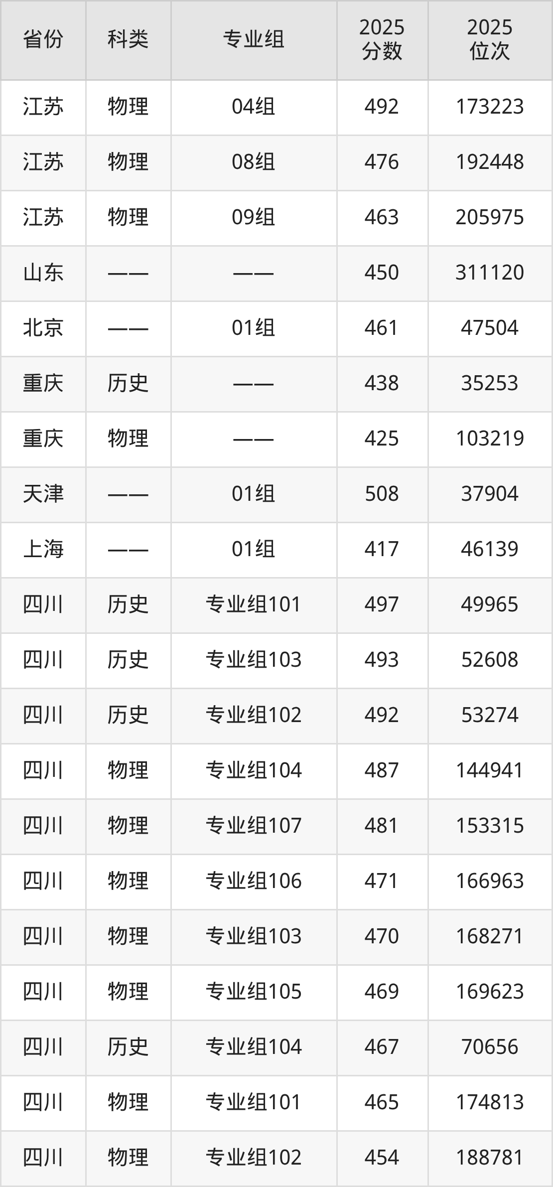 除上述省份外,西南财经大学天府学院2025各省录取最低分详情见下: