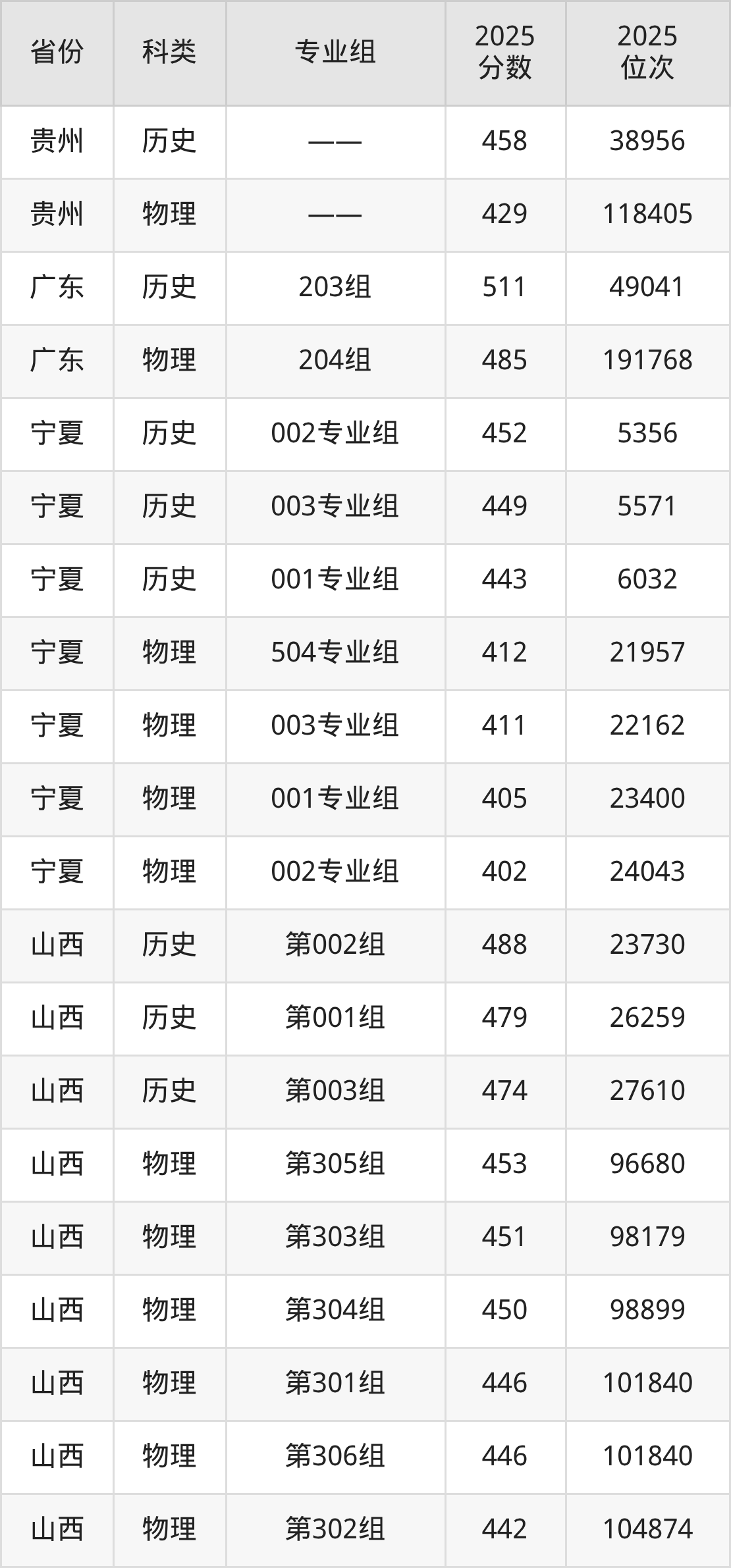 4、宁夏:最低分402分,对应最低分专业组为物理类002专业组,位次24043名;