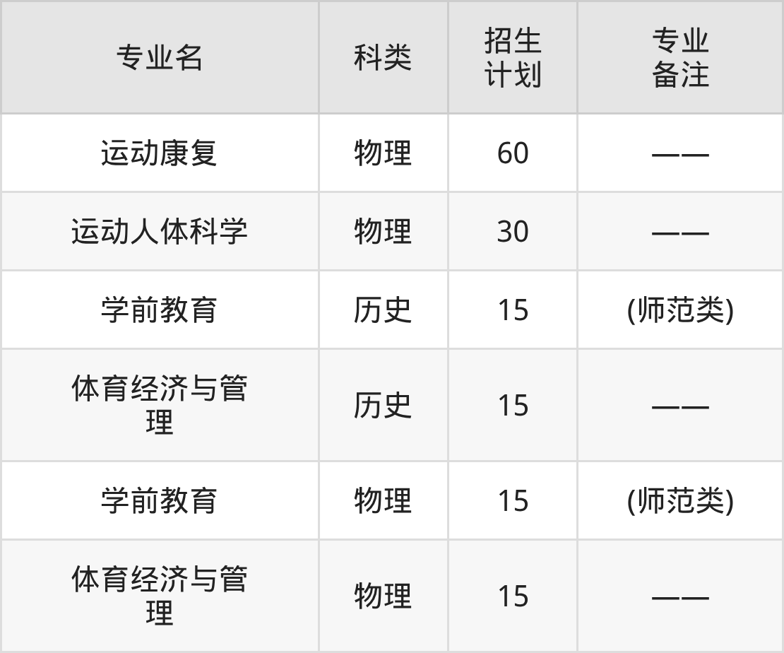 2025年河北体育学院仅面向全国一个省份招生:河北省150人。招生人数最多的专业是运动康复专业,学制为4年、学费为8000元,该专业选科要求为物理+不限。如果2026届考生想要报考,至少需满足该专业的基本招生要求,且最终以其最新一年招生计划为准。