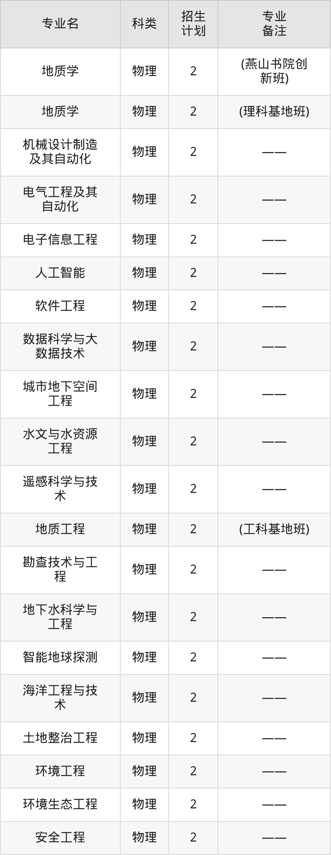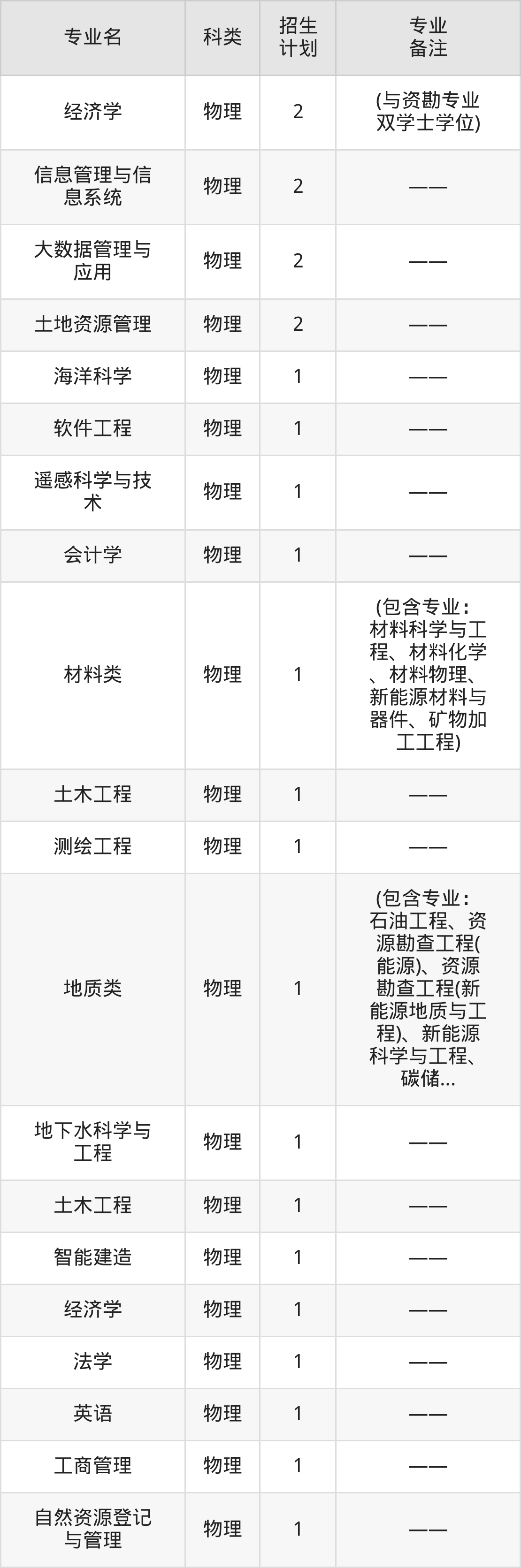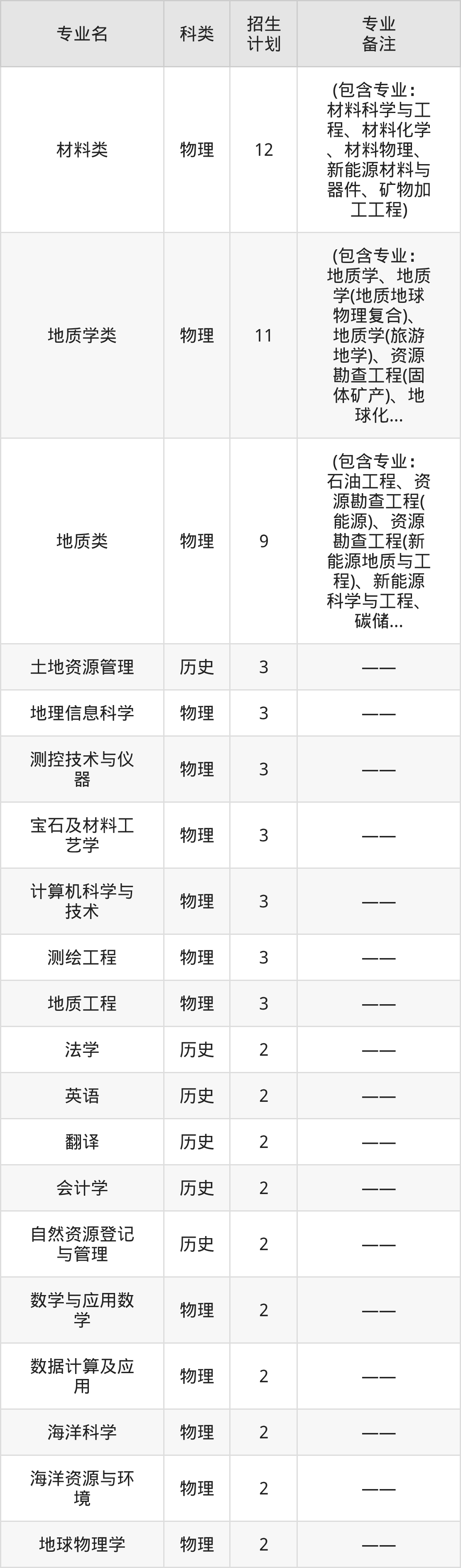 一、中国地质大学(北京)2026全国招生计划表