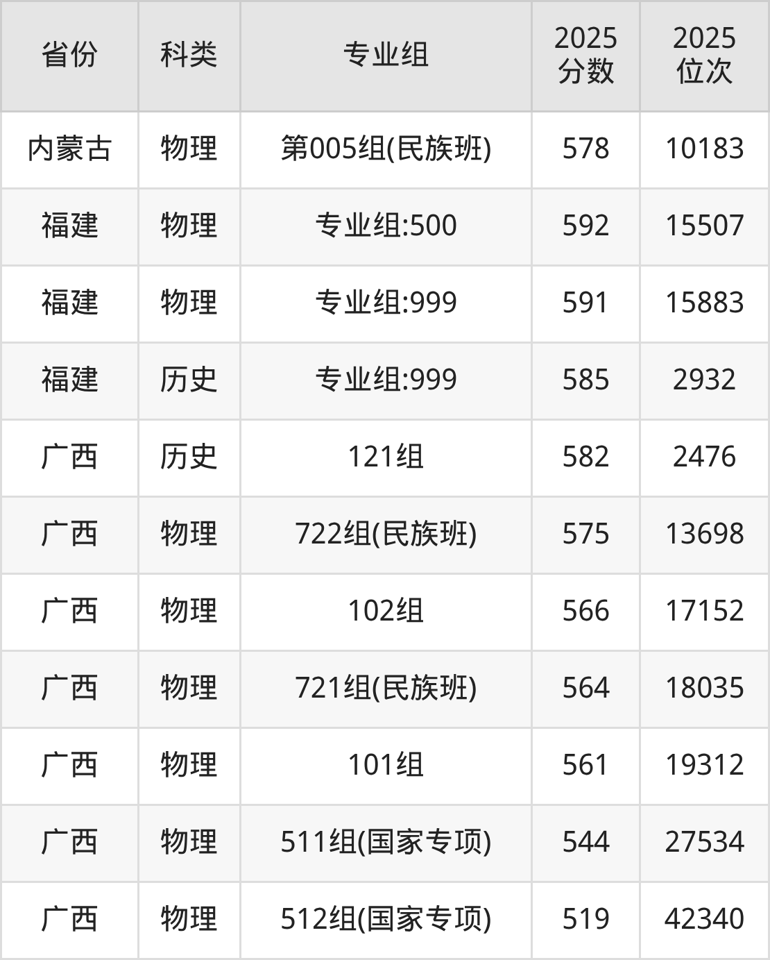 3、广西:最低分519分,对应最低分专业组为物理类512组(国家专项),位次42340名;