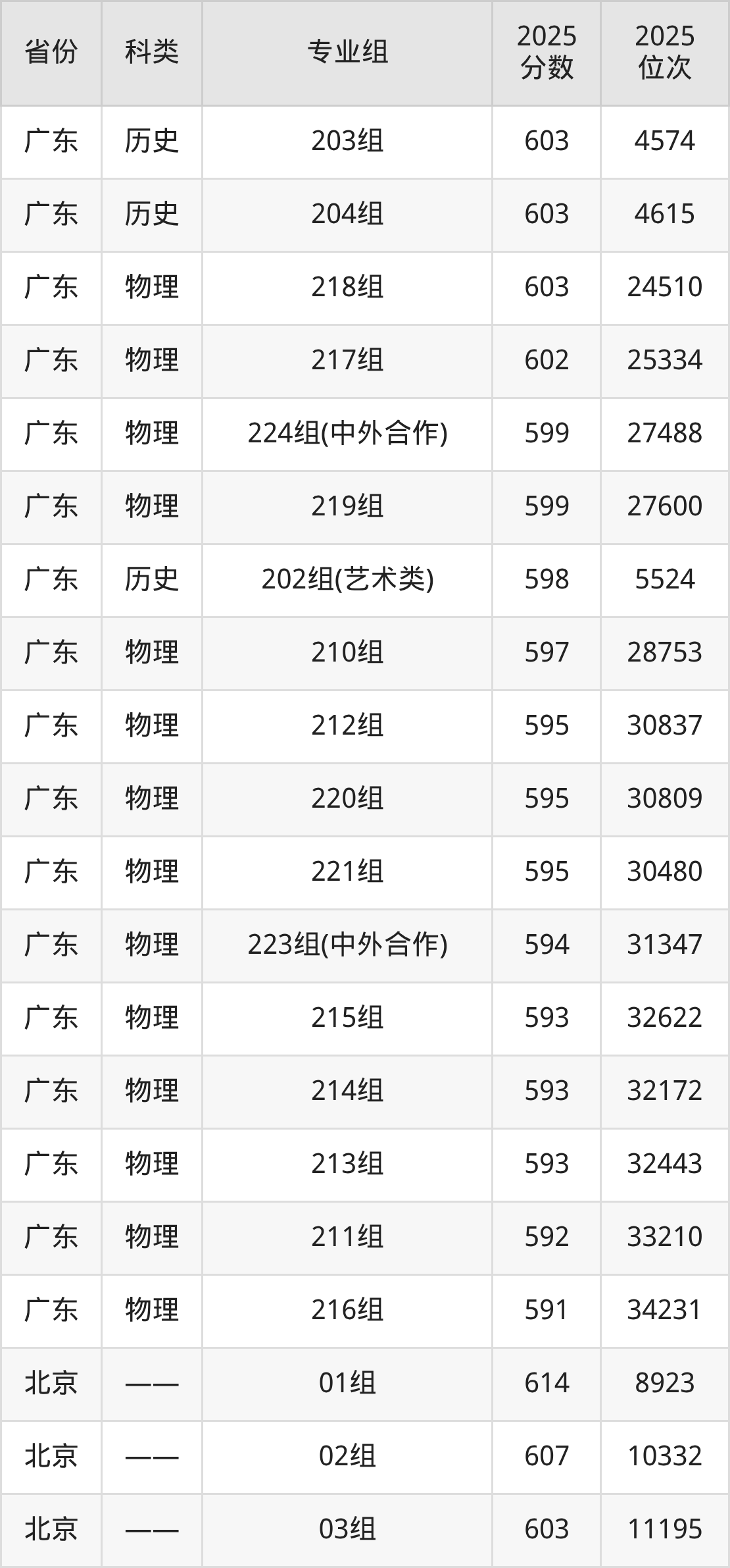 除上述省份外,暨南大学2025各省录取最低分详情见下: