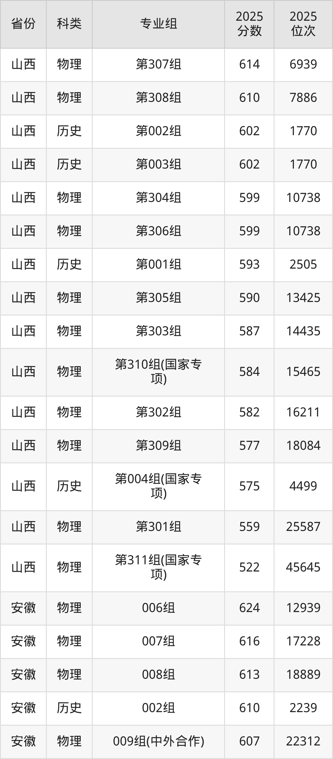 5、山西:最低分522分,对应最低分专业组为物理类第311组(国家专项),位次45645名;