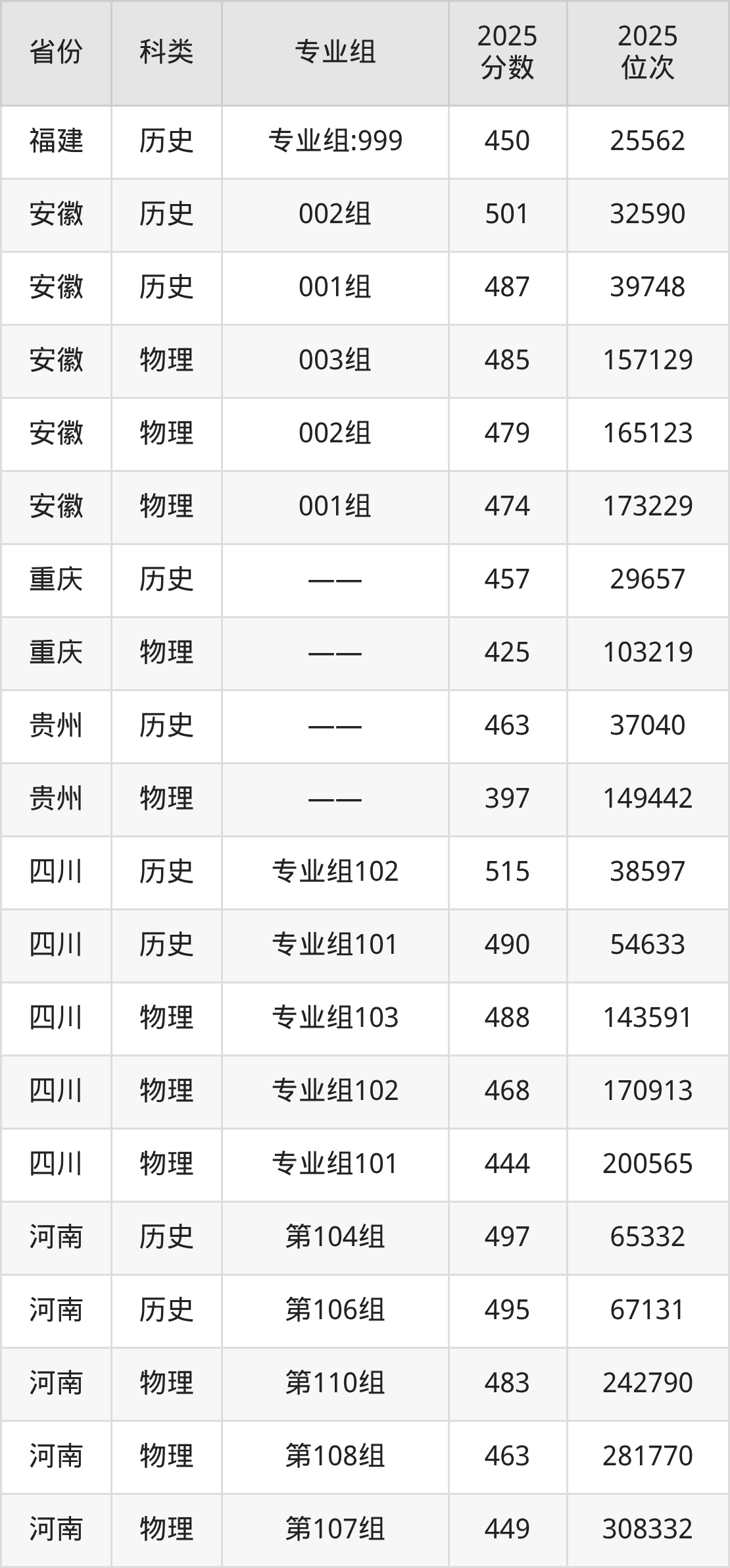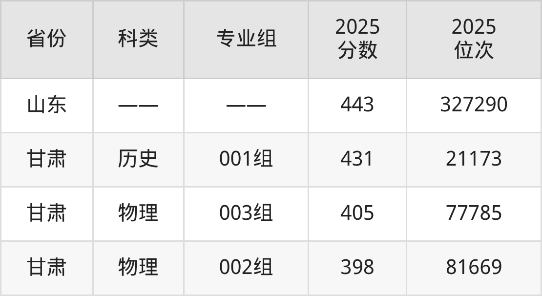 4、甘肃:最低分398分,对应最低分专业组为物理类002组,位次81669名;