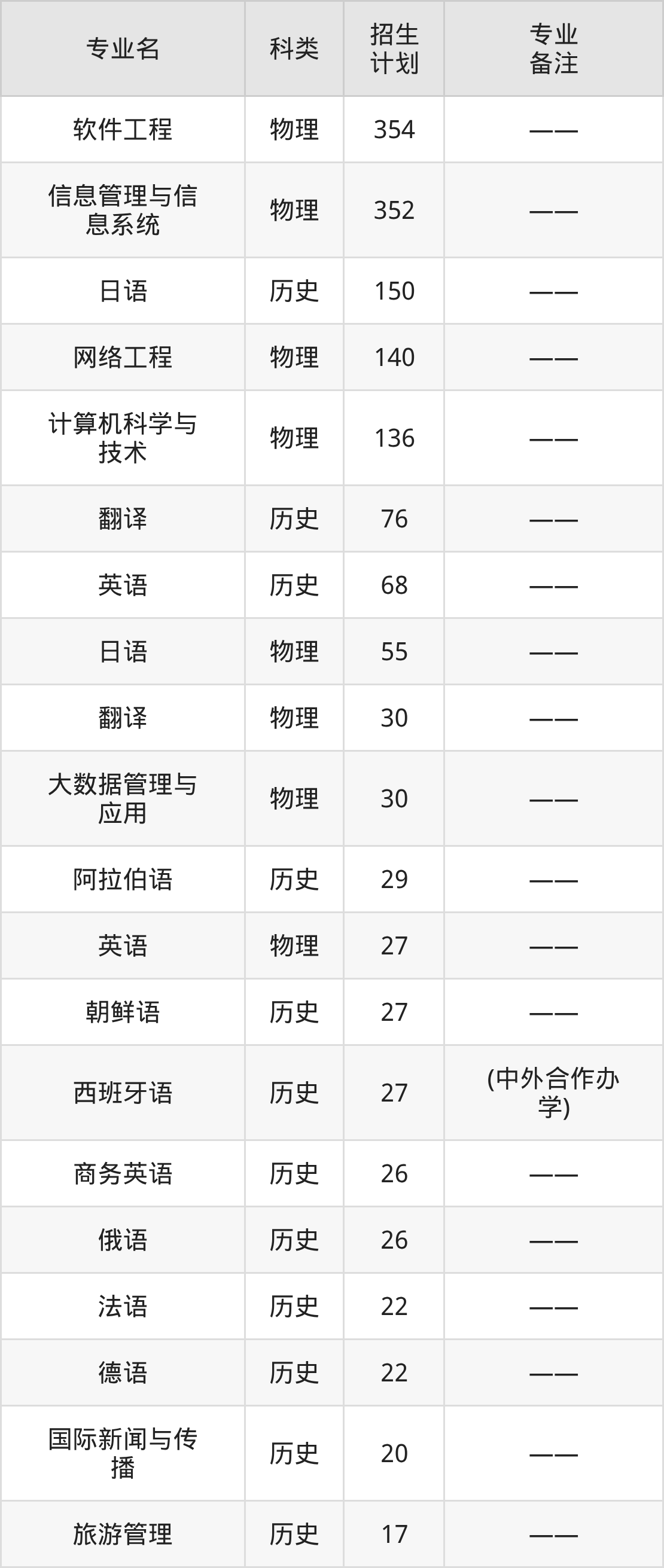 第三名:河南(92人),招生人数最多的专业是翻译(7人、历史类)。
