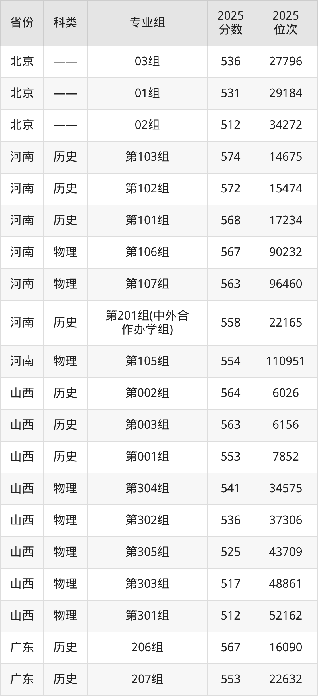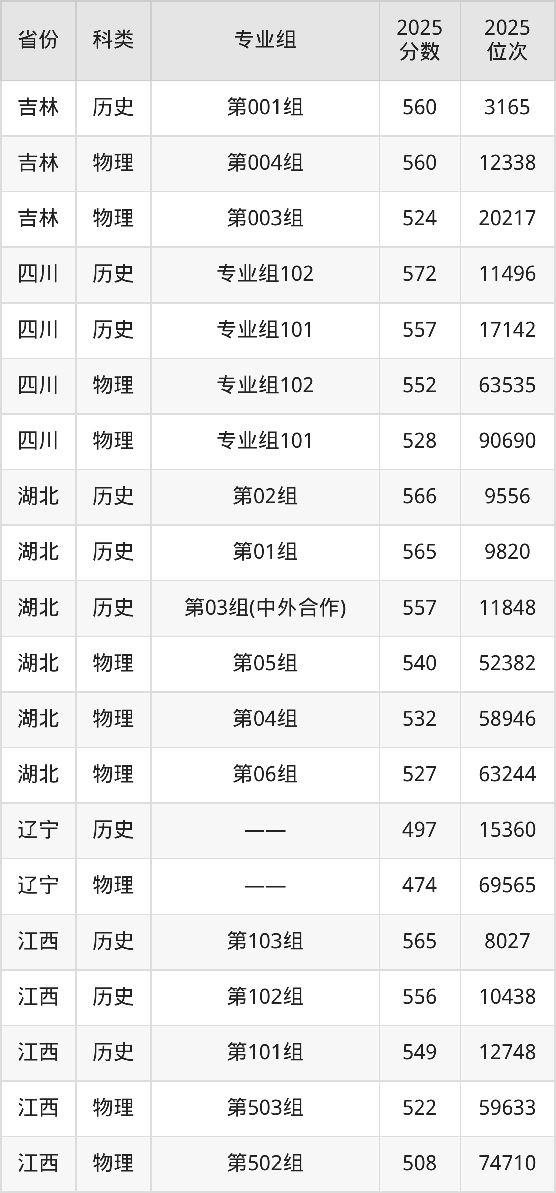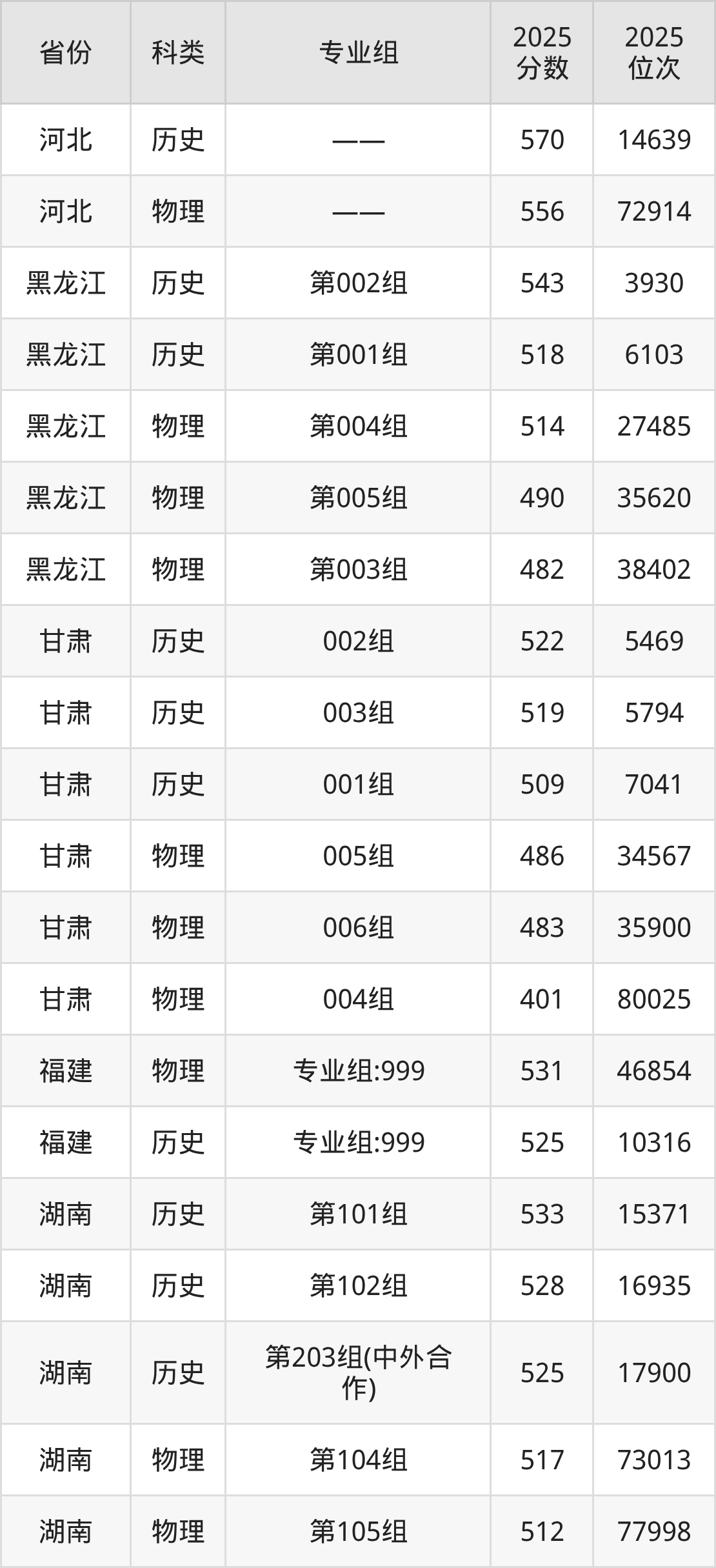 1、甘肃:最低分401分,对应最低分专业组为物理类004组,位次80025名;