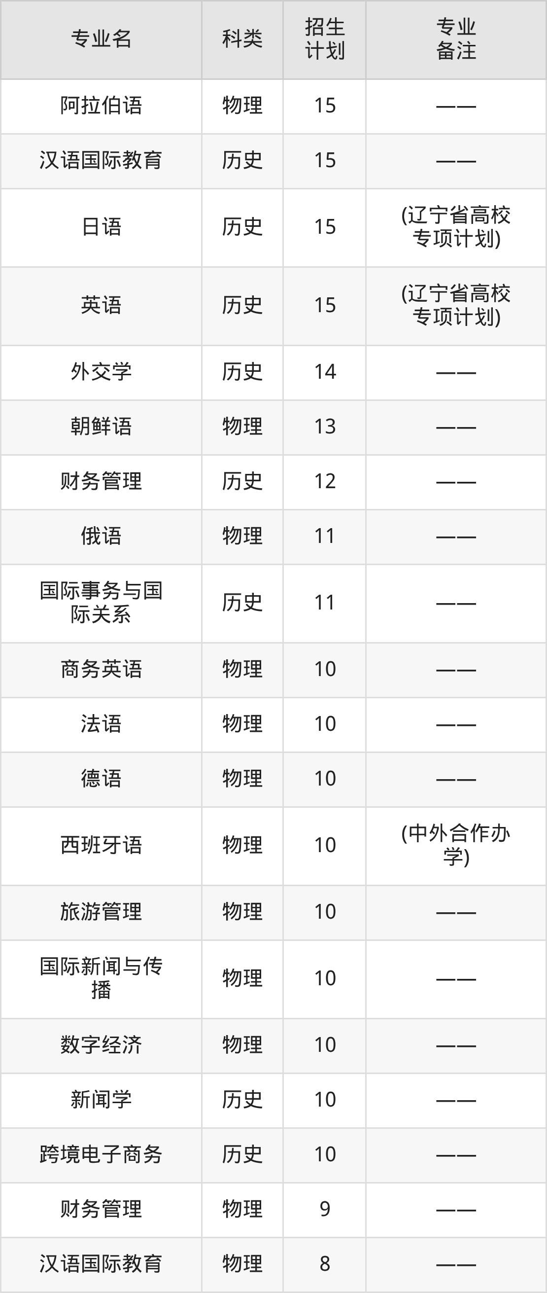 值得注意的是,大连外国语大学在本科批招生,招生类型为物理类、历史类。篇幅有限,这里仅附上大连外国语大学在辽宁省内招生计划详情: