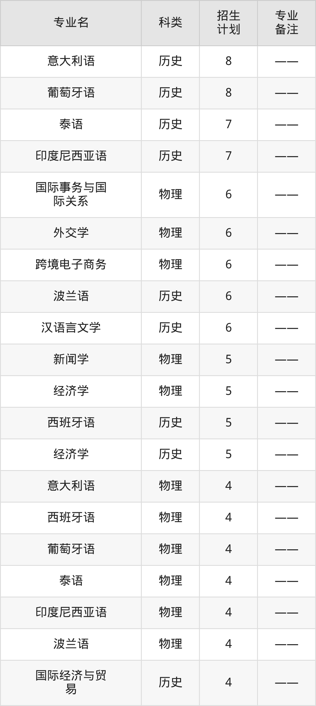 大连外国语大学2025全国各省招生计划详情见下: