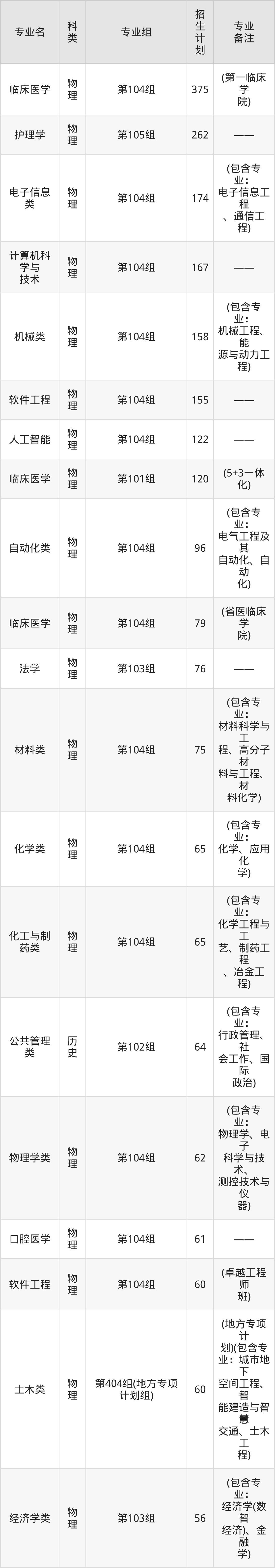 第一名:河南(4467人),招生人数最多的专业是临床医学(375人、物理类,(第一临床学院))。