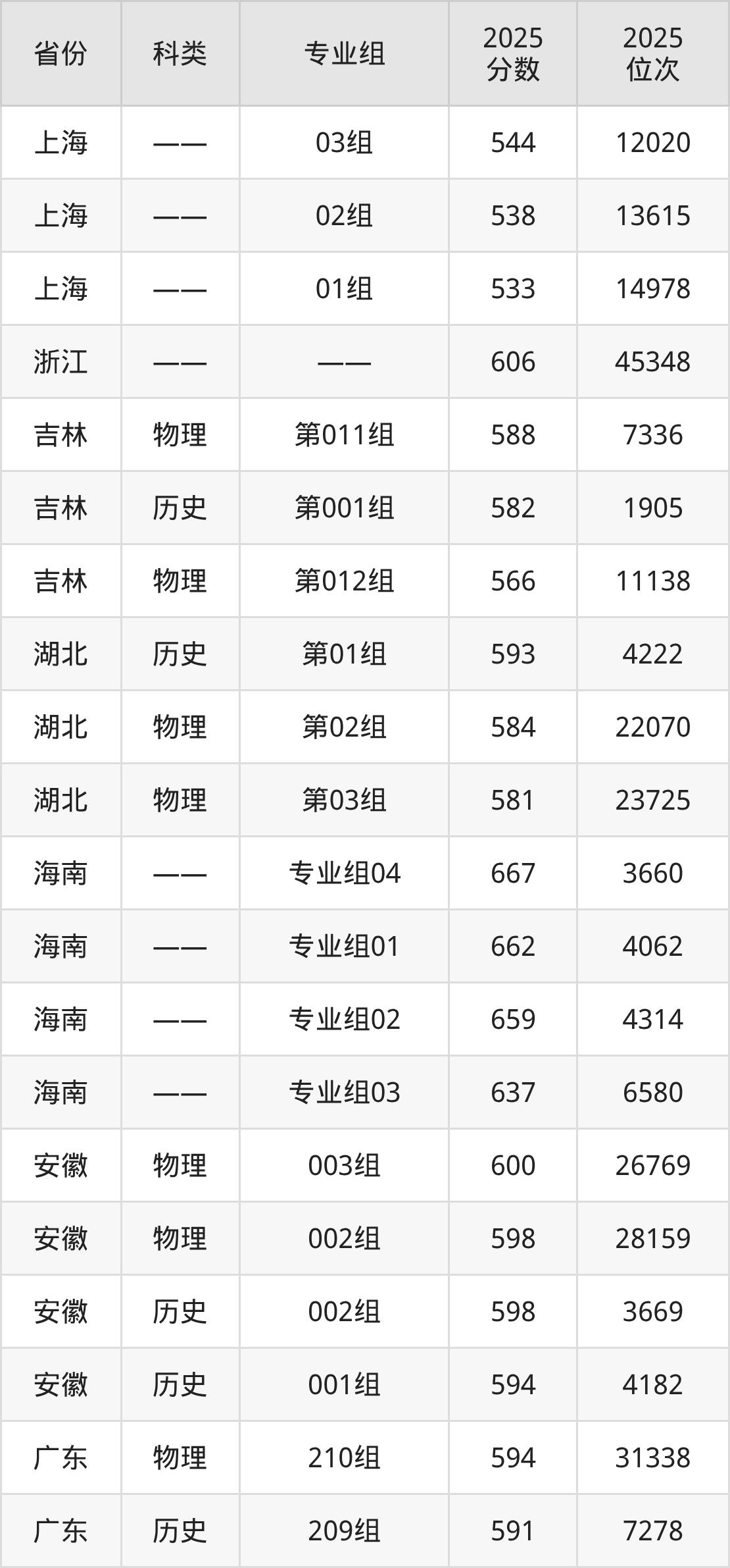 5、上海:最低分533分,对应最低分专业组为01组,位次14978名;