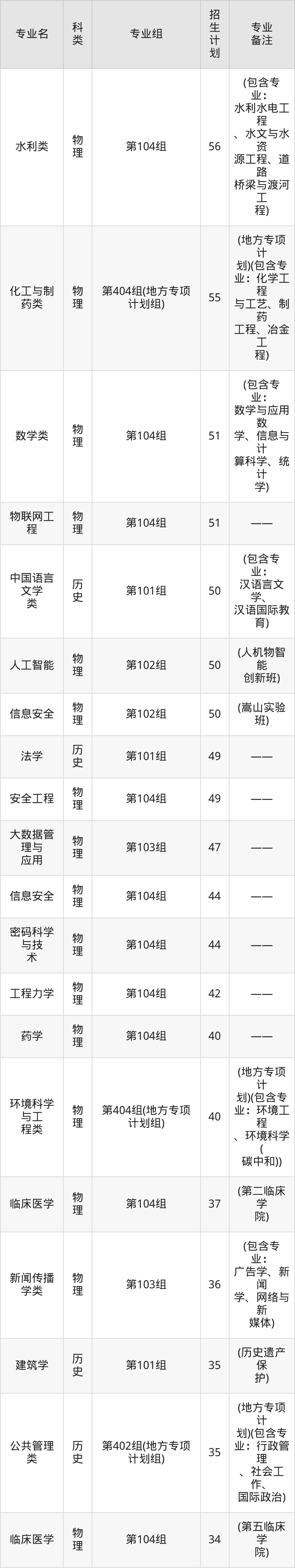 值得注意的是,郑州大学在本科批招生,招生类型为物理类、历史类。篇幅有限,这里仅附上郑州大学在河南省内招生计划详情: