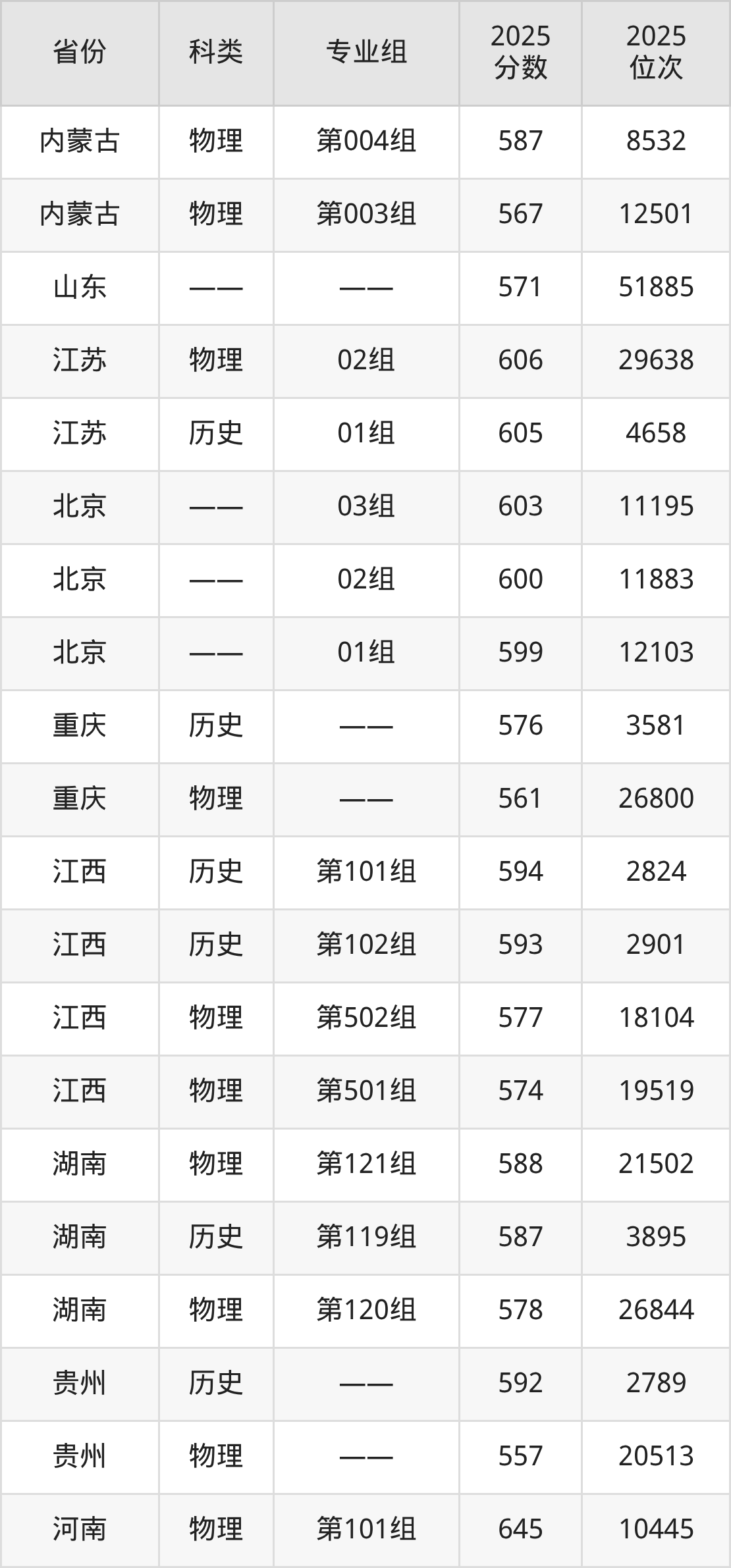 除上述省份外,郑州大学2025各省录取最低分详情见下:
