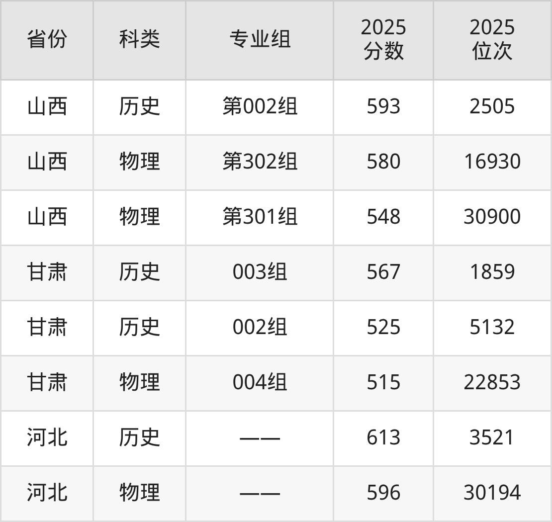 4、甘肃:最低分515分,对应最低分专业组为物理类004组,位次22853名;