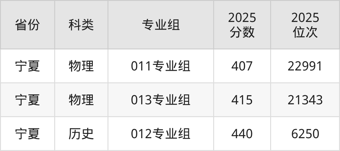 2025年宁夏工商职业技术大学在宁夏自治区录取最低分为407分,对应最低分专业组为011专业组,位次在22991名及以内的物理类考生有机会被录取。而结合批次线来看,考生至少要超本科线407分才达院校收分门槛。