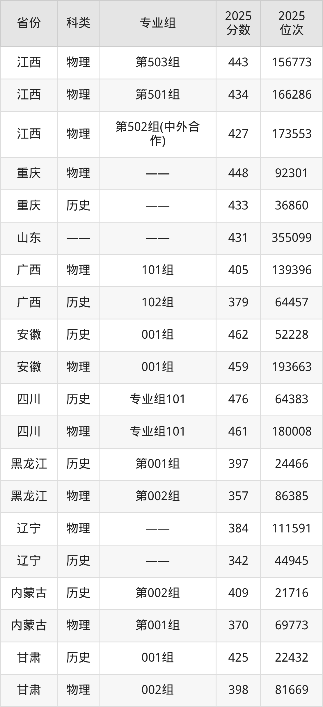 除上述省份外,江西电力职业技术学院2025各省录取最低分详情见下: