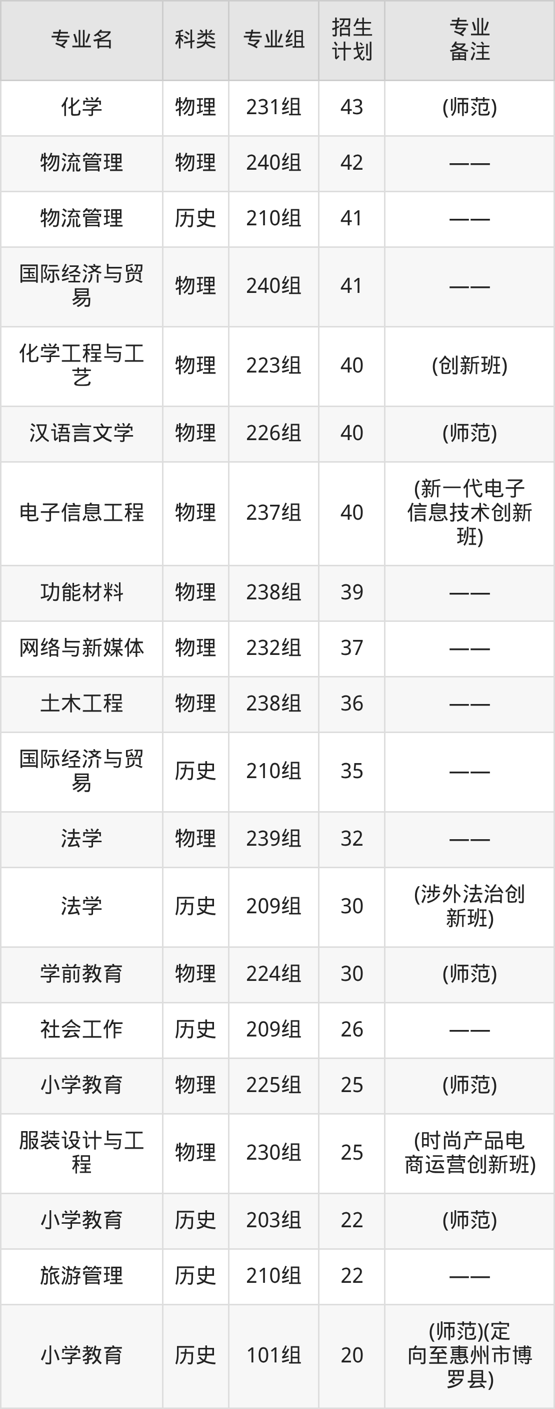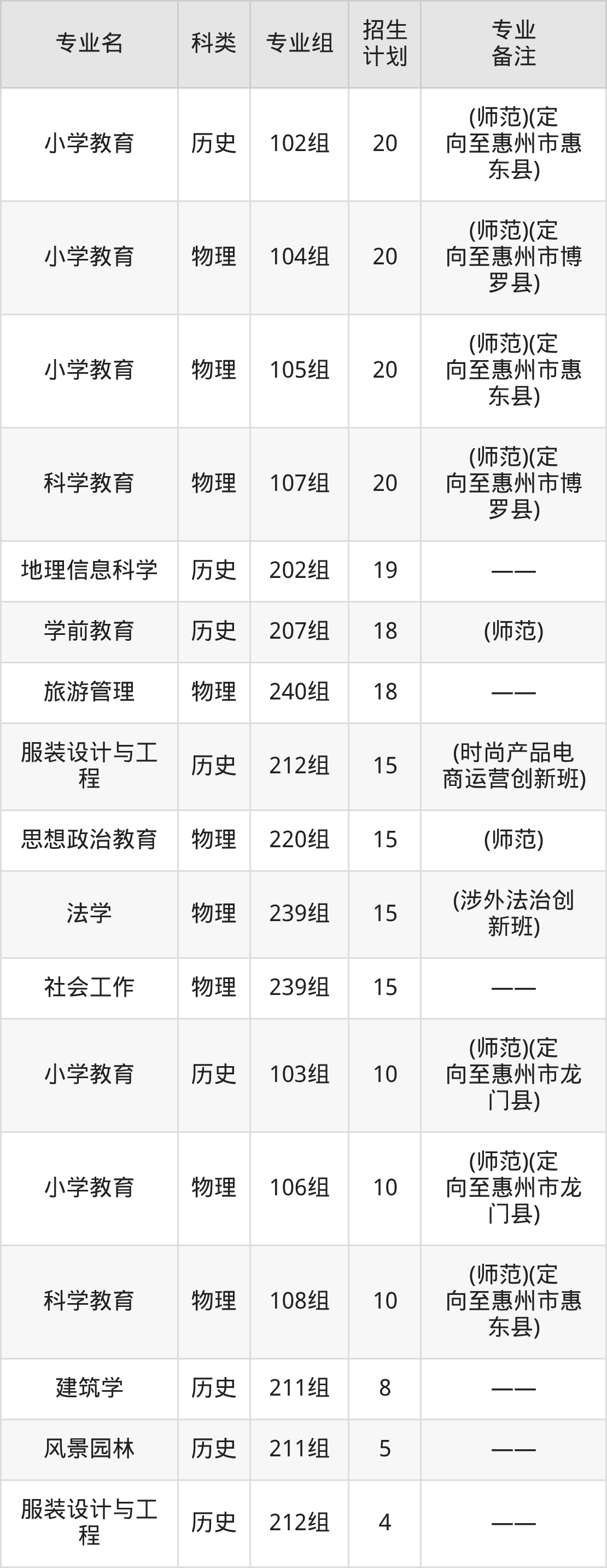值得注意的是,惠州学院在本科批、本科提前批招生,招生类型为物理类、历史类。篇幅有限,这里仅附上惠州学院在广东省内招生计划详情: