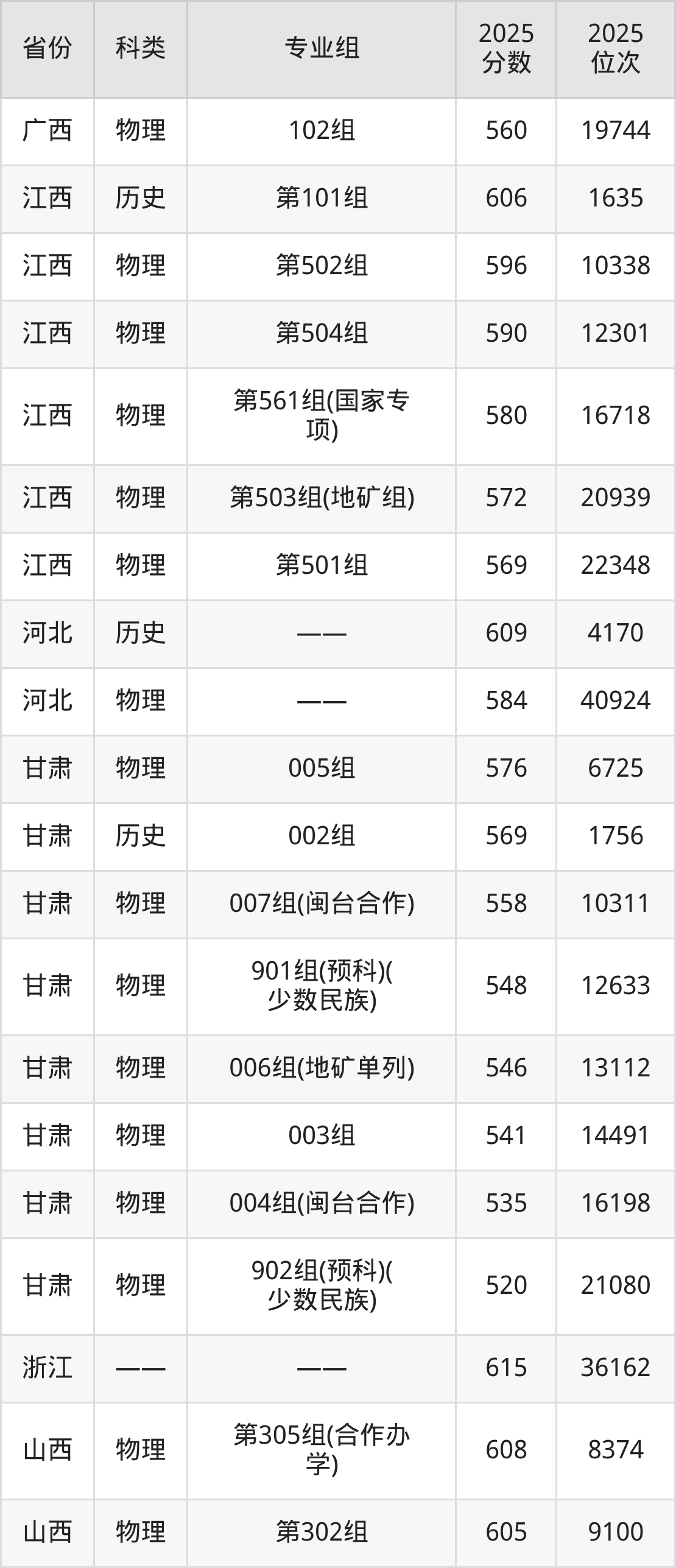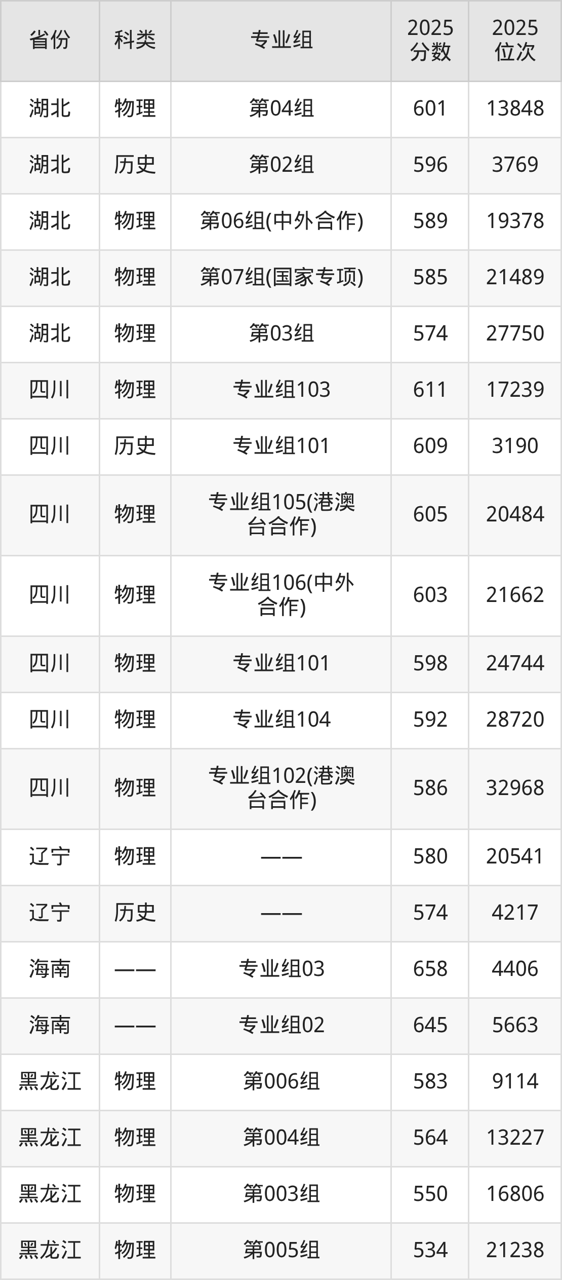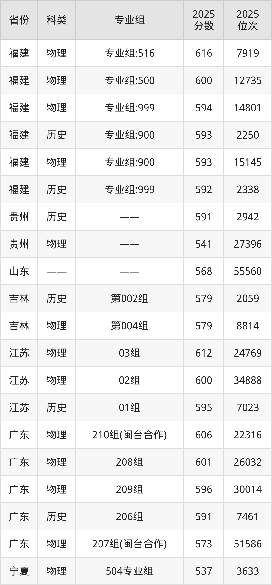 除上述省份外,福州大学2025各省录取最低分详情见下: