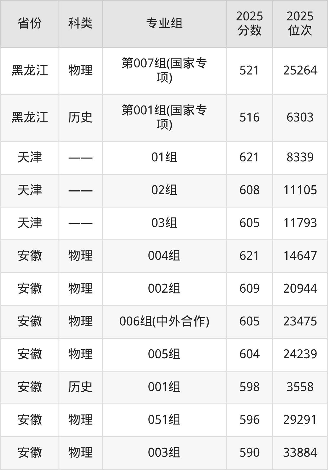 2、黑龙江:最低分516分,对应最低分专业组为历史类第001组(国家专项),位次6303名;