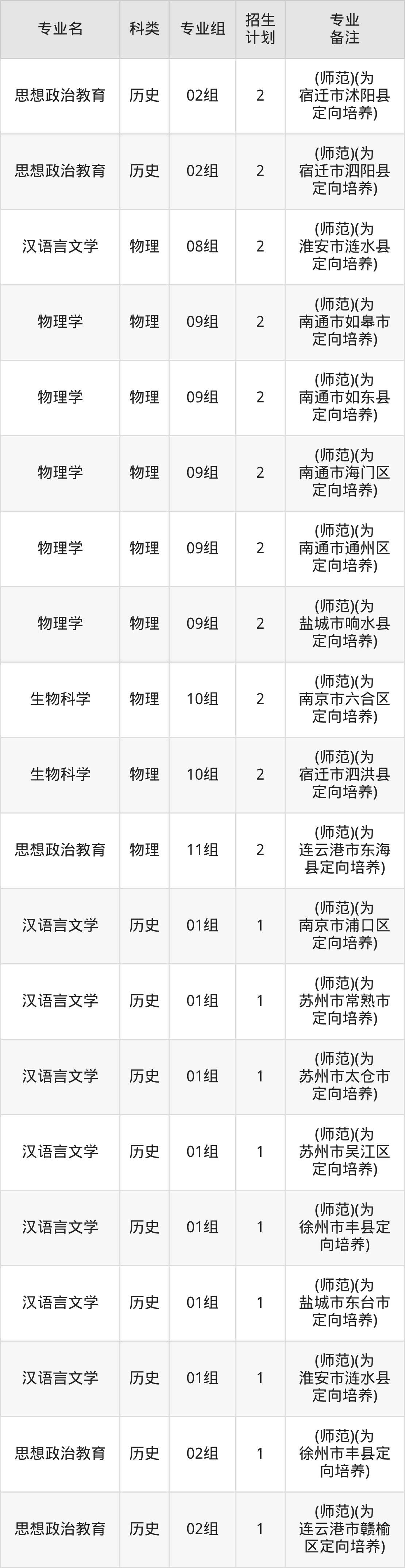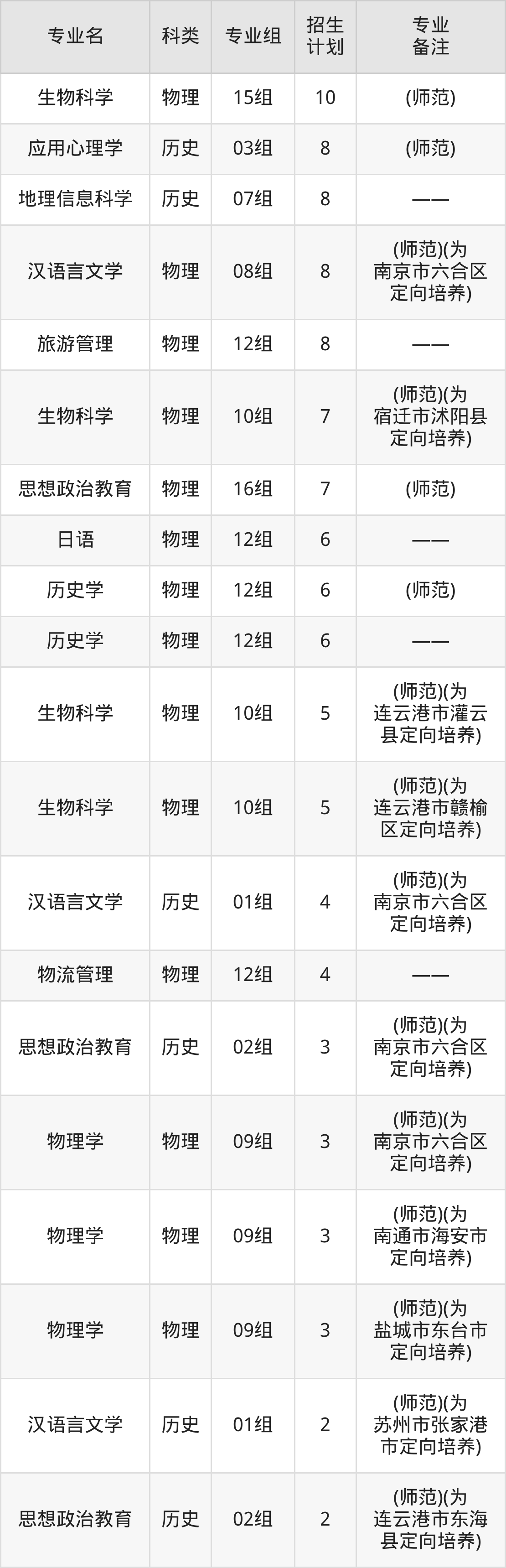 值得注意的是,南京晓庄学院在本科批、本科提前批招生,招生类型为物理类、历史类。篇幅有限,这里仅附上南京晓庄学院在江苏省内招生计划详情: