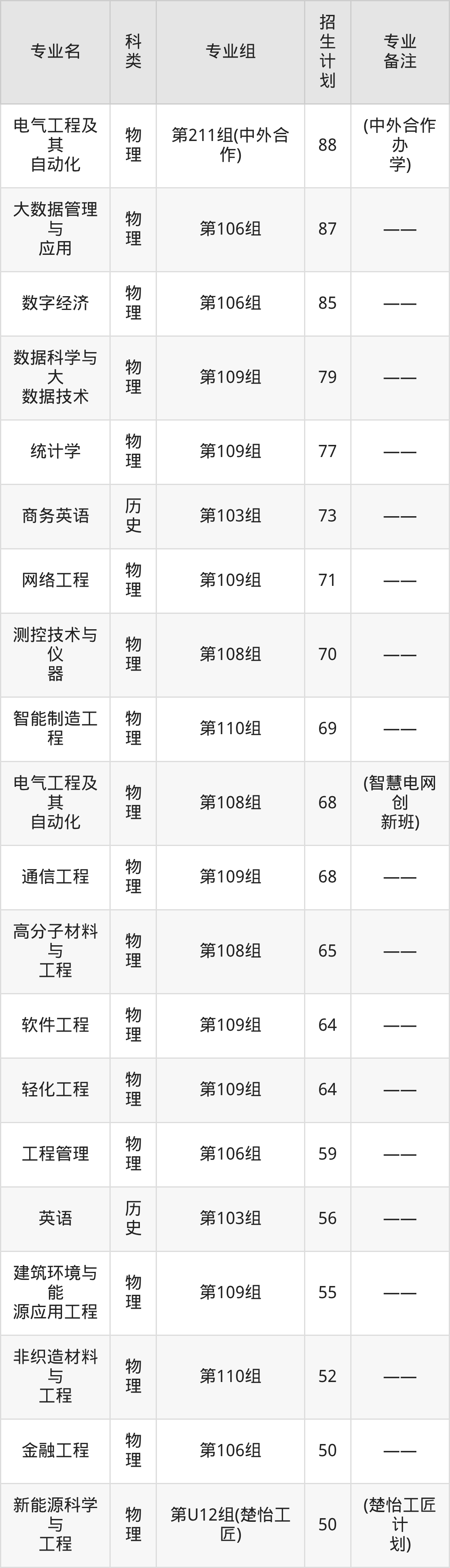 值得注意的是,湖南工程学院在本科批招生,招生类型为物理类、历史类。篇幅有限,这里仅附上湖南工程学院在湖南省内招生计划详情: