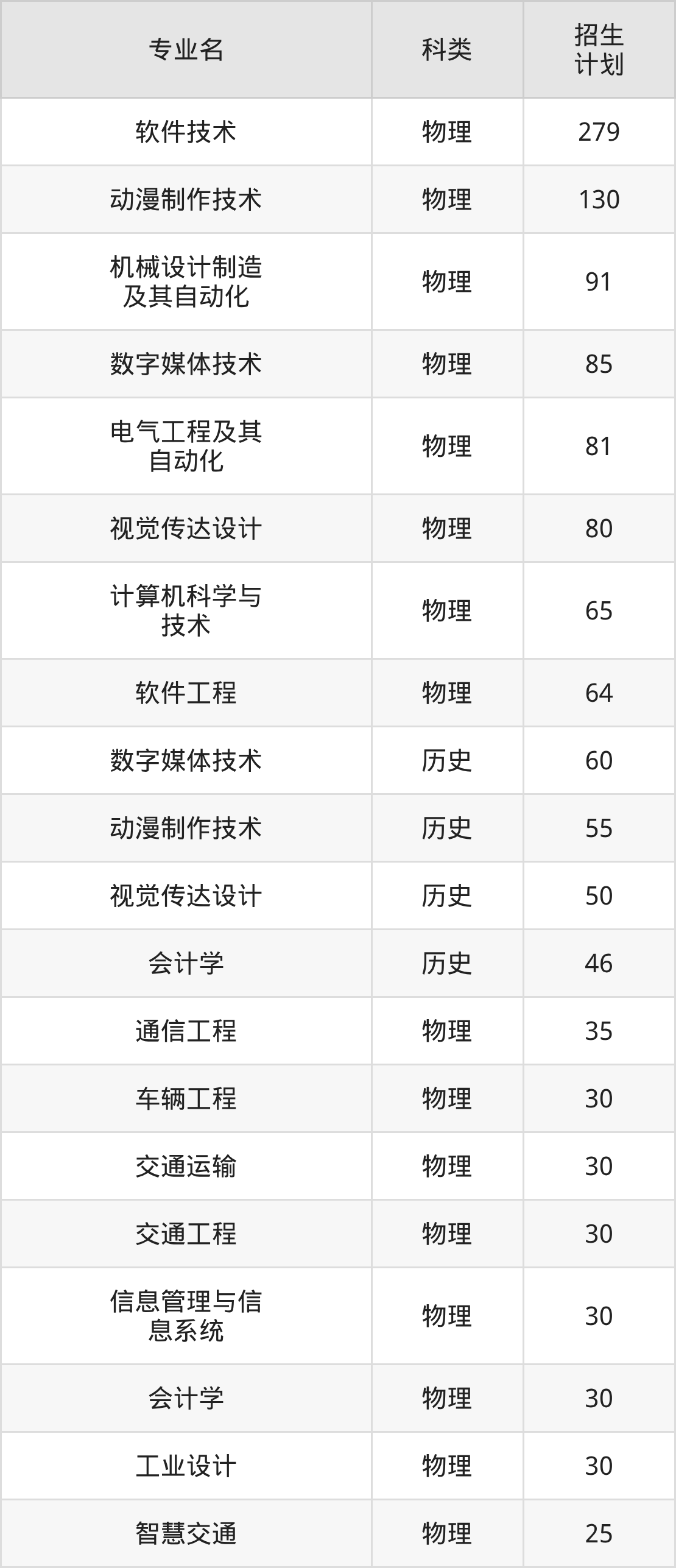 第二名:黑龙江(270人),招生人数最多的专业是软件技术(25人、物理类)。