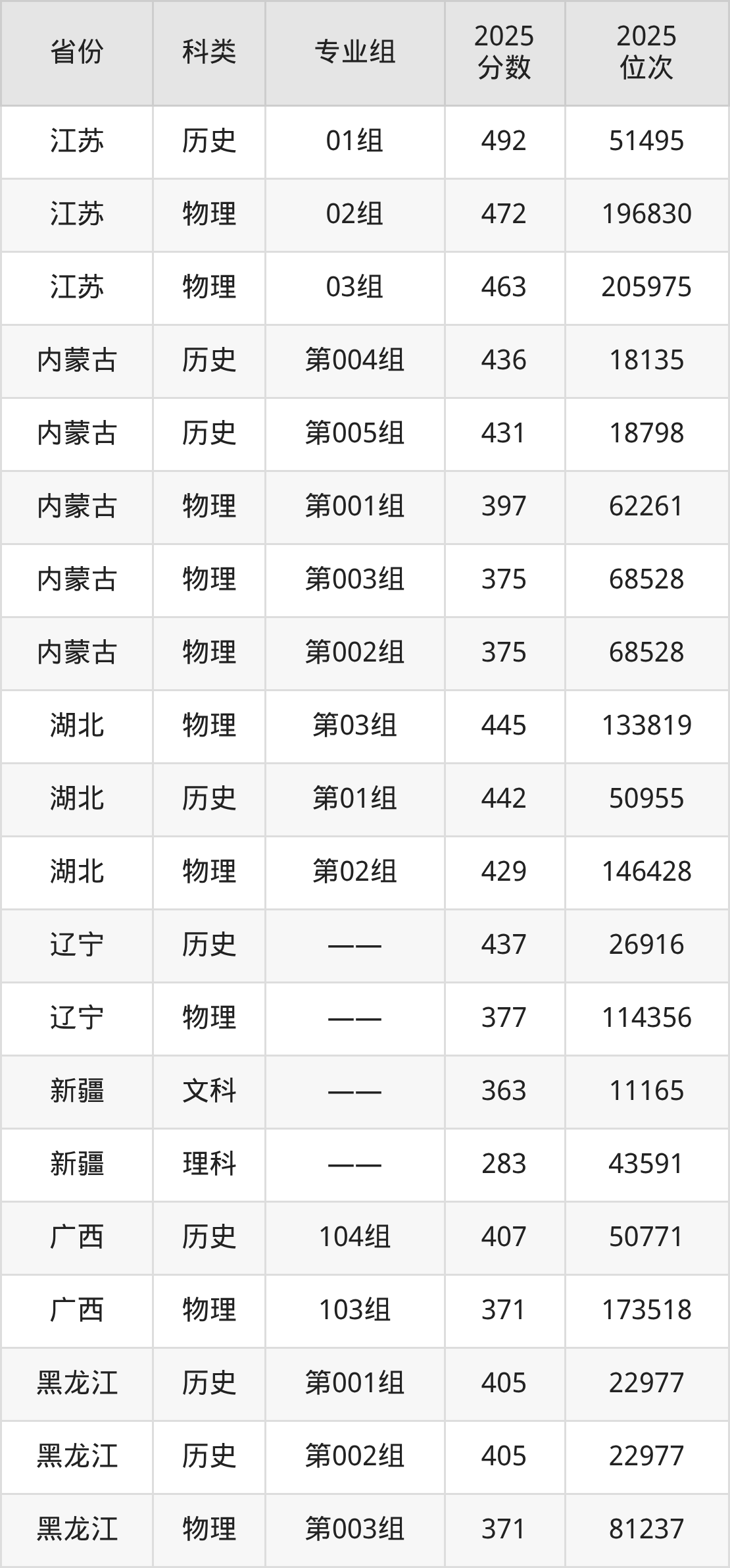 除上述省份外,黑龙江财经学院2025各省录取最低分详情见下: