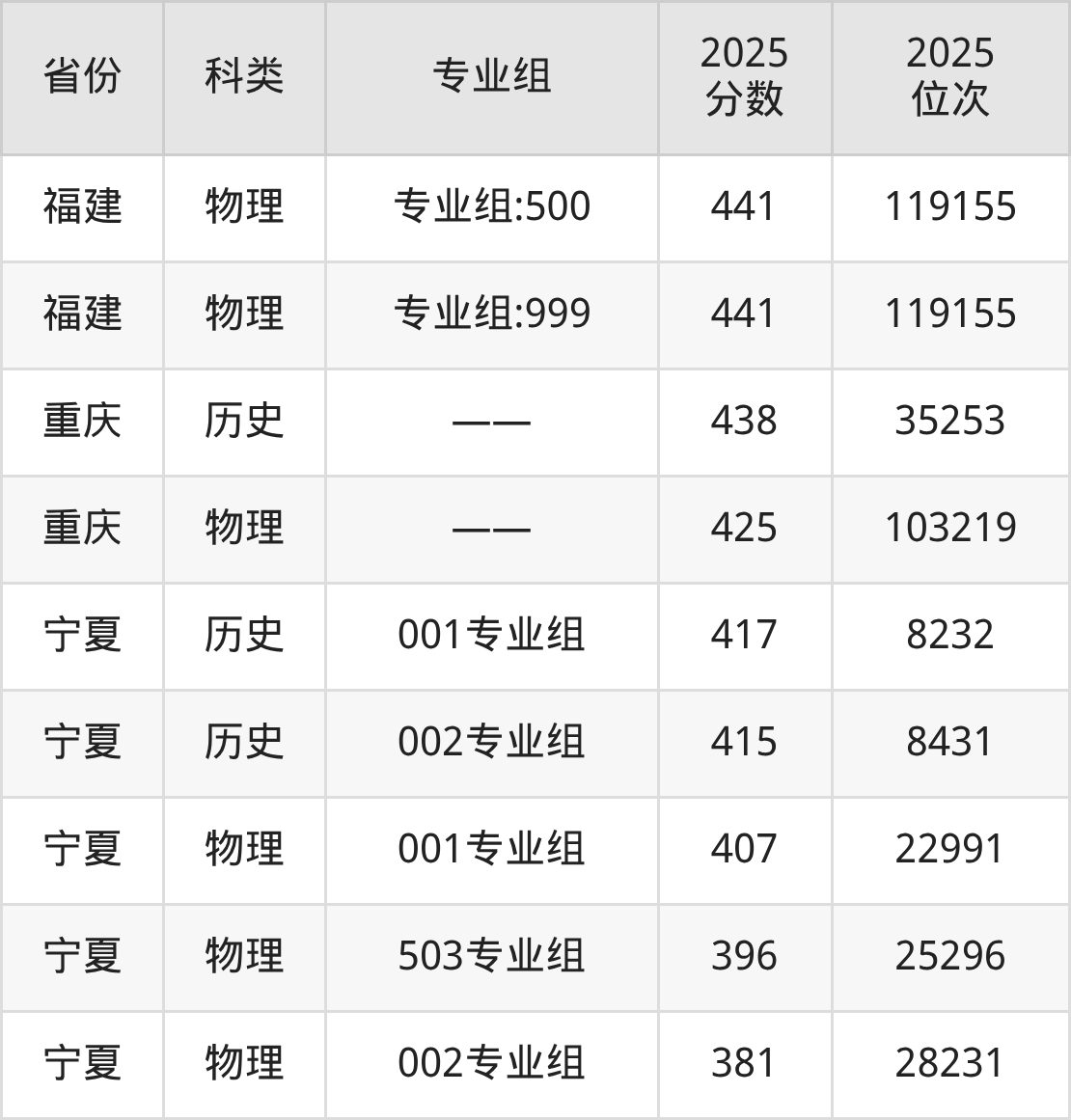 5、甘肃:最低分375分,对应最低分专业组为物理类004组,位次93298名;