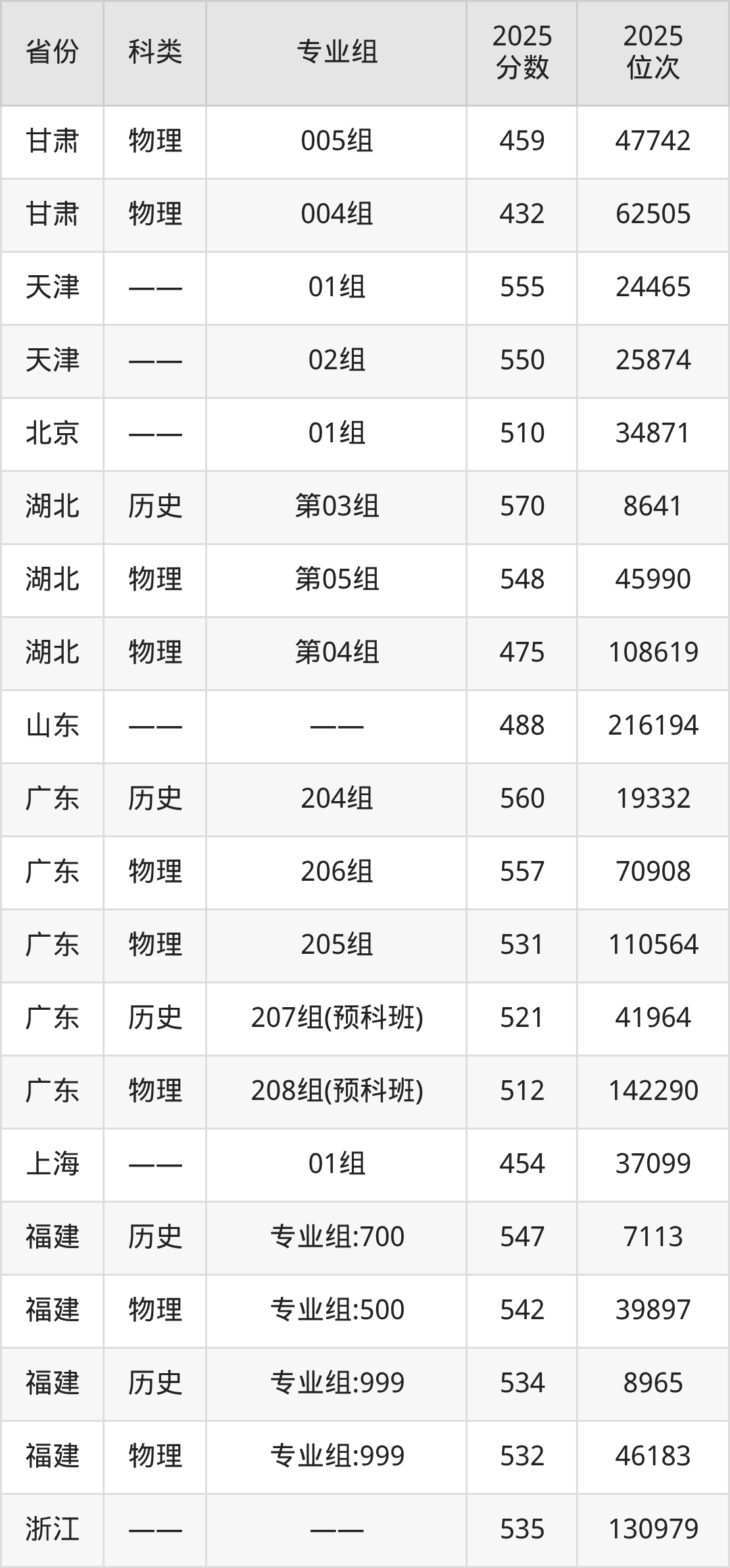 5、湖北:最低分475分,对应最低分专业组为物理类第04组,位次108619名;