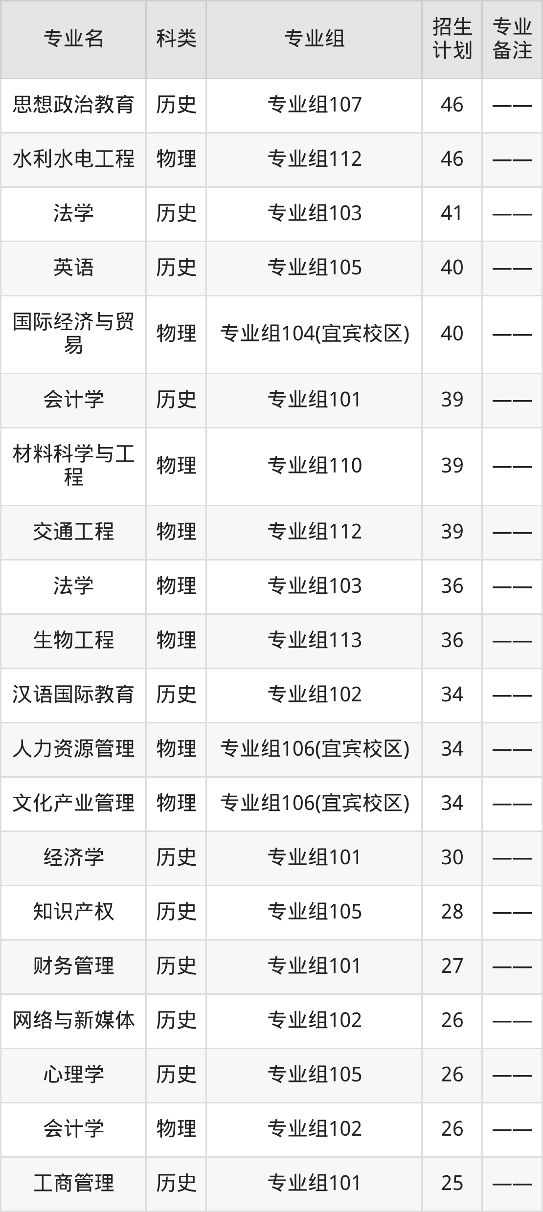 第二名:重庆(233人),招生人数最多的专业是土木工程(15人、物理类)。
