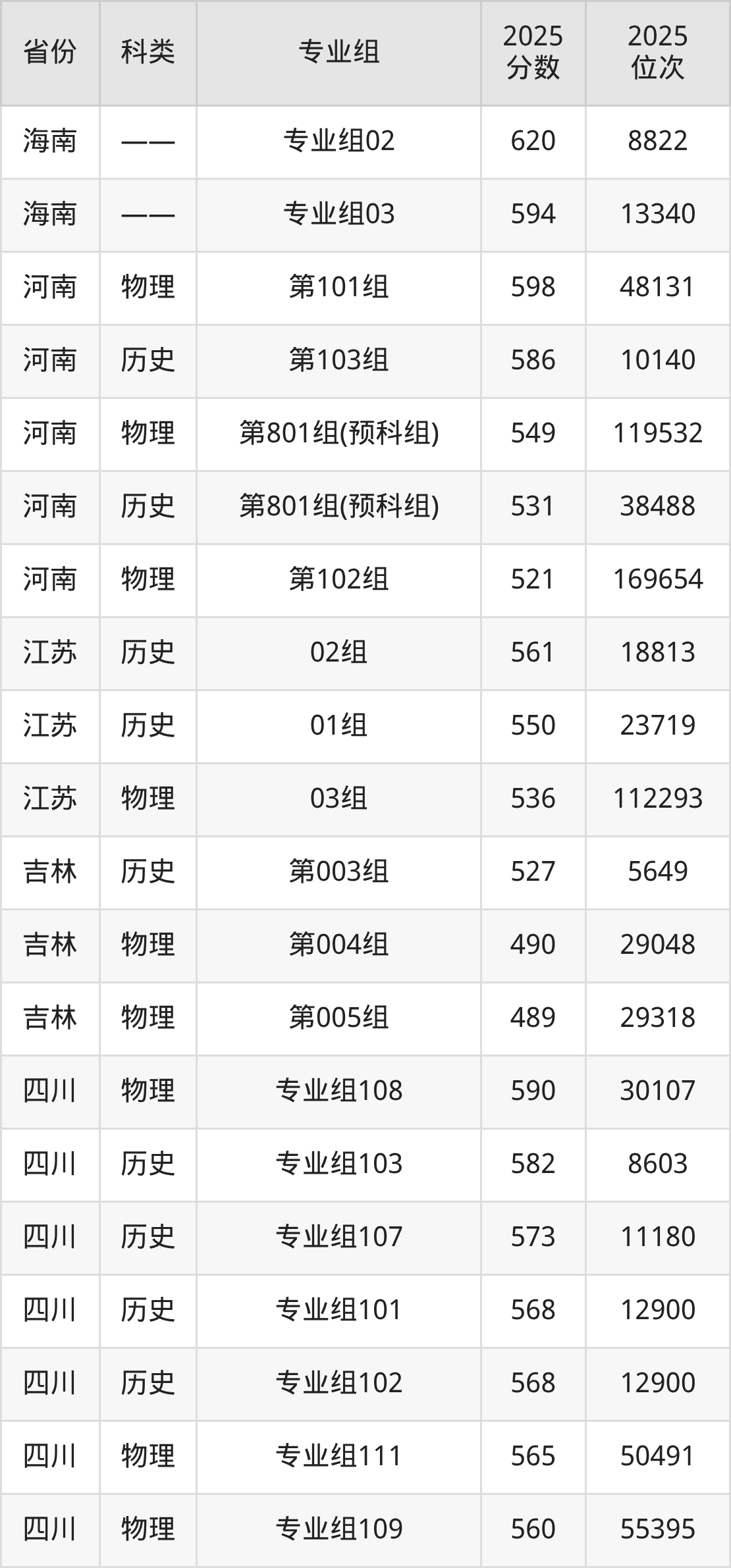 2025西华大学在各省录取最低分在432分到620分之间不等,其中分数门槛最低的是甘肃,最高的是海南。下面展示西华大学录取分数线最低的5个省份(含最低分专业组及位次):
