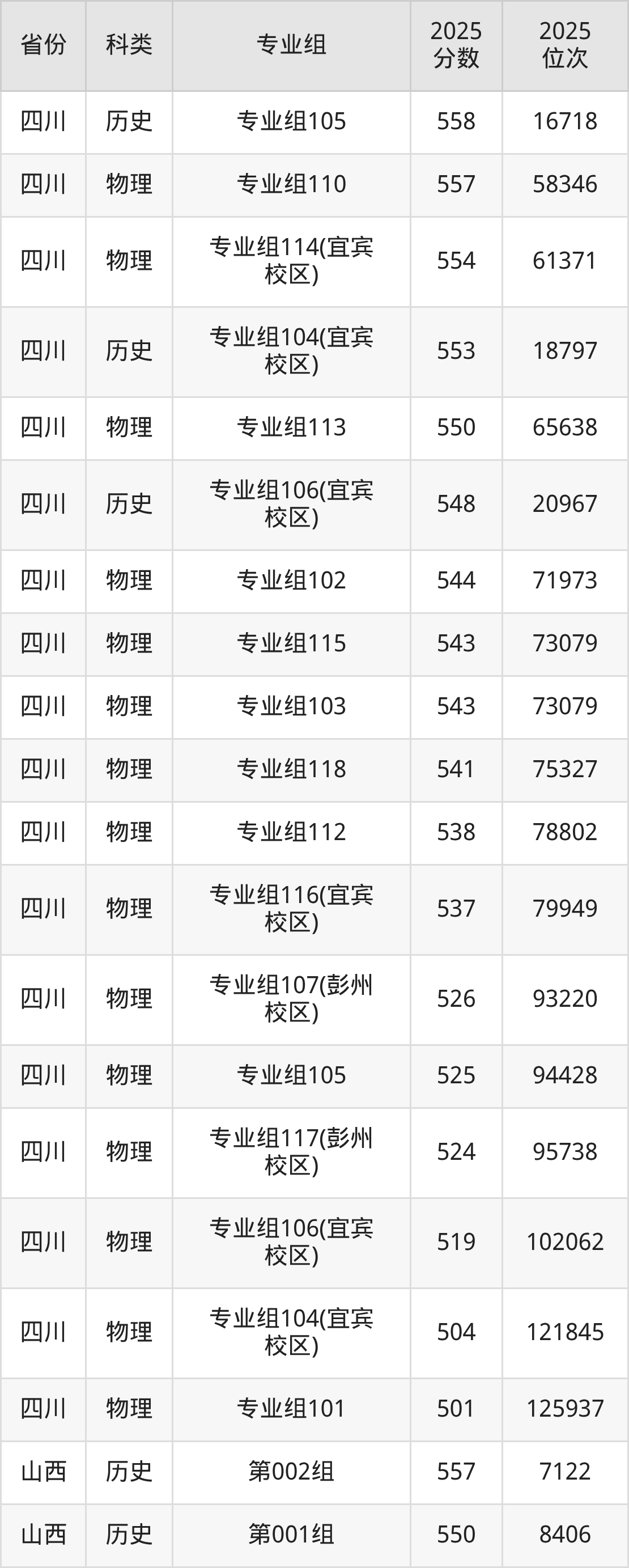 除上述省份外,西华大学2025各省录取最低分详情见下: