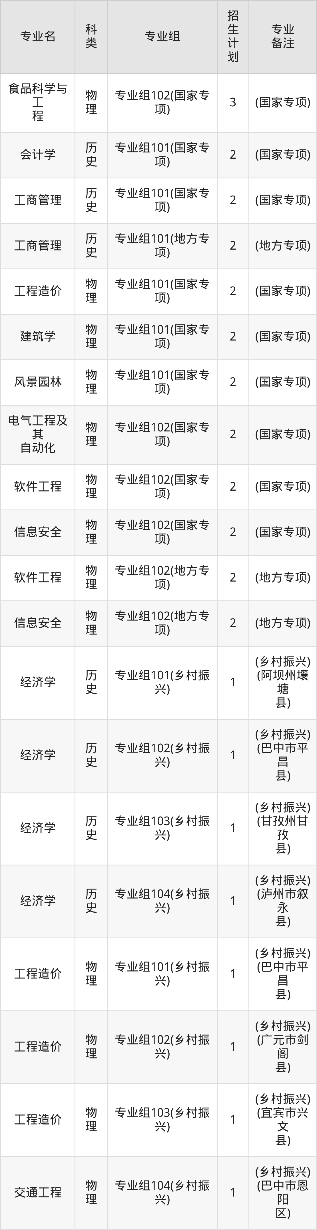 值得注意的是,西华大学在本科批、本科批A段(地方专项)、本科批A段(国家专项)、本科提前批C招生,招生类型为物理类、历史类。篇幅有限,这里仅附上西华大学在四川省内招生计划详情: