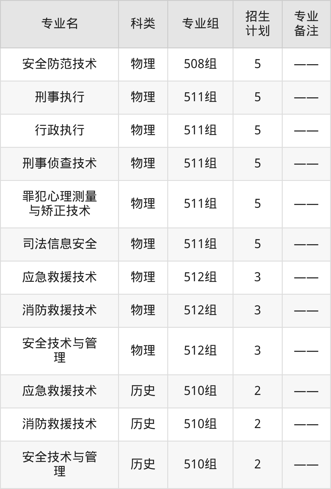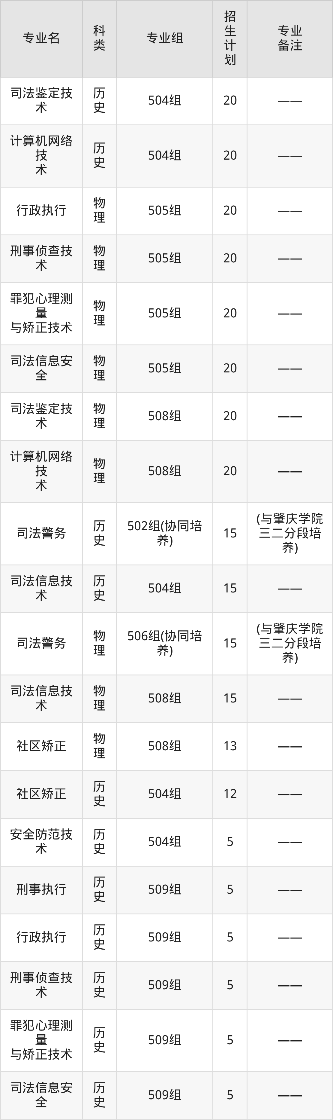 值得注意的是,广东司法警官职业学院在专科批招生,招生类型为历史类、物理类。篇幅有限,这里仅附上广东司法警官职业学院在广东省内招生计划详情: