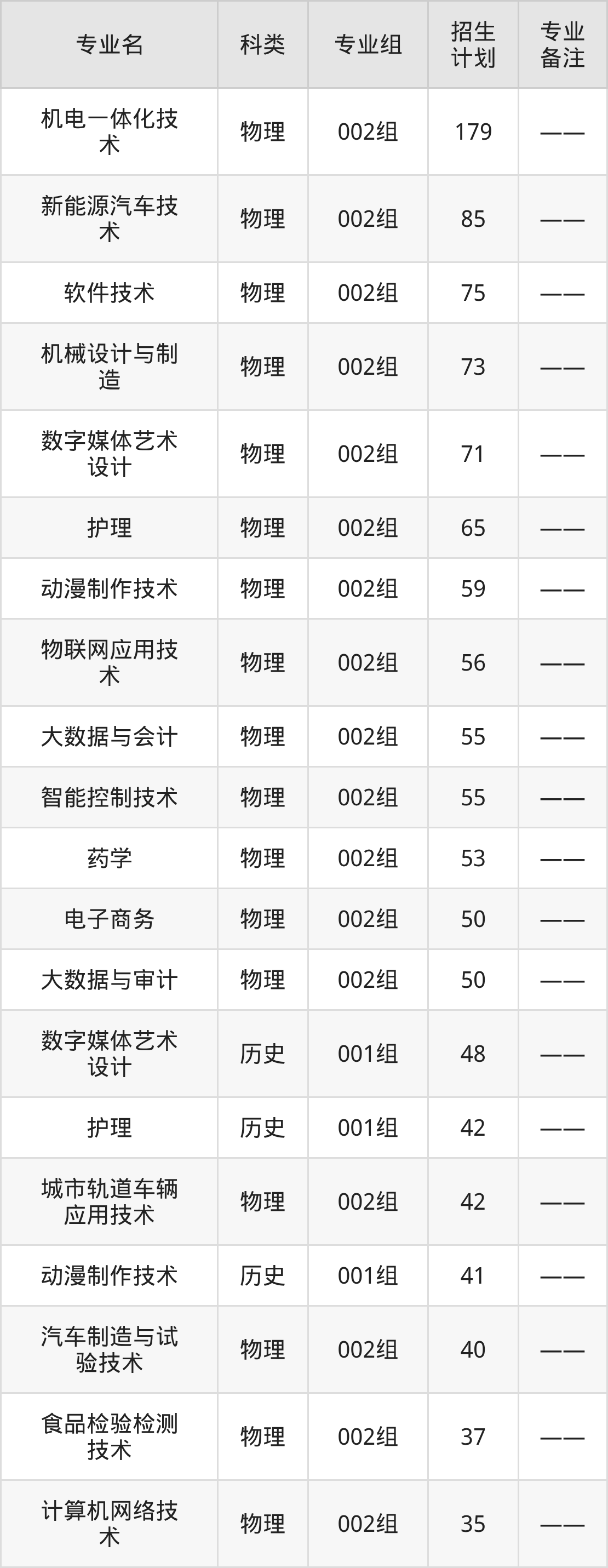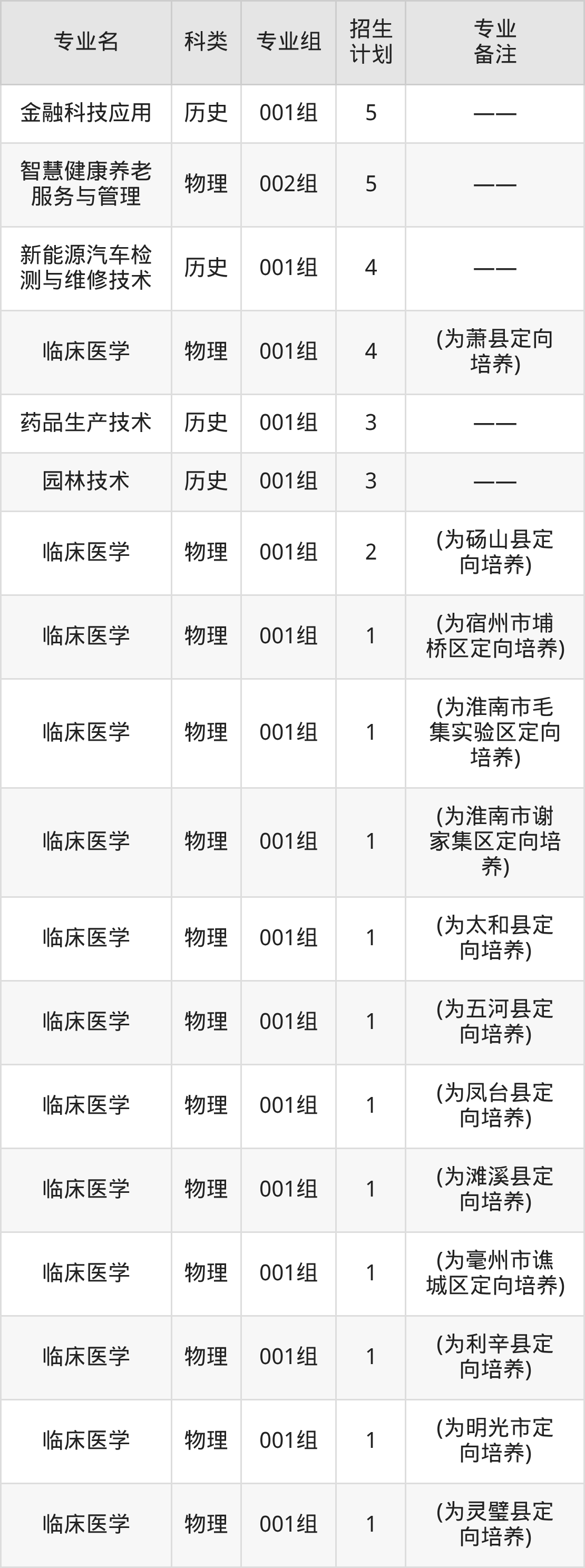 值得注意的是,合肥职业技术学院在专科批、专科提前批招生,招生类型为物理类、历史类。篇幅有限,这里仅附上合肥职业技术学院在安徽省内招生计划详情:
