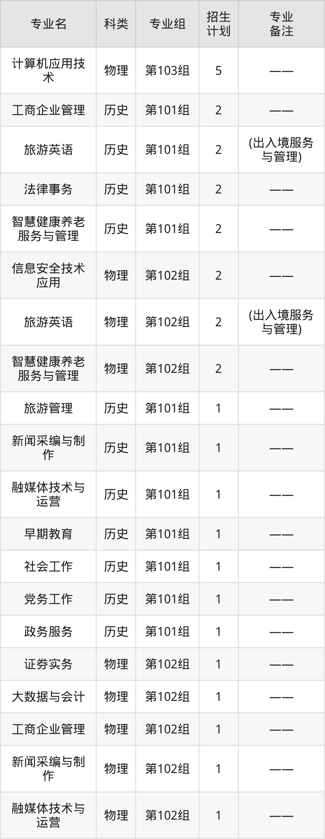 值得注意的是,北京青年政治学院在专科批招生,招生类型为物理类、历史类。篇幅有限,这里仅附上北京青年政治学院在河南省内招生计划详情: