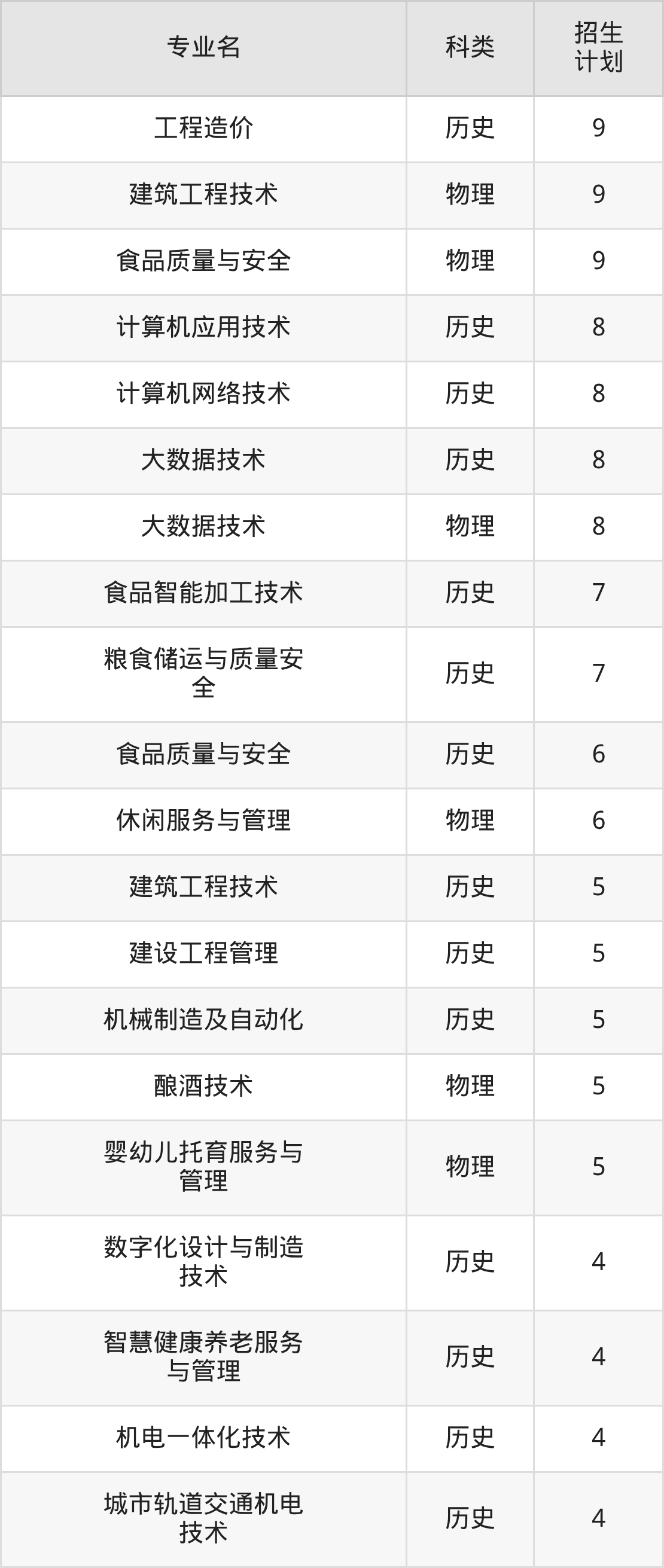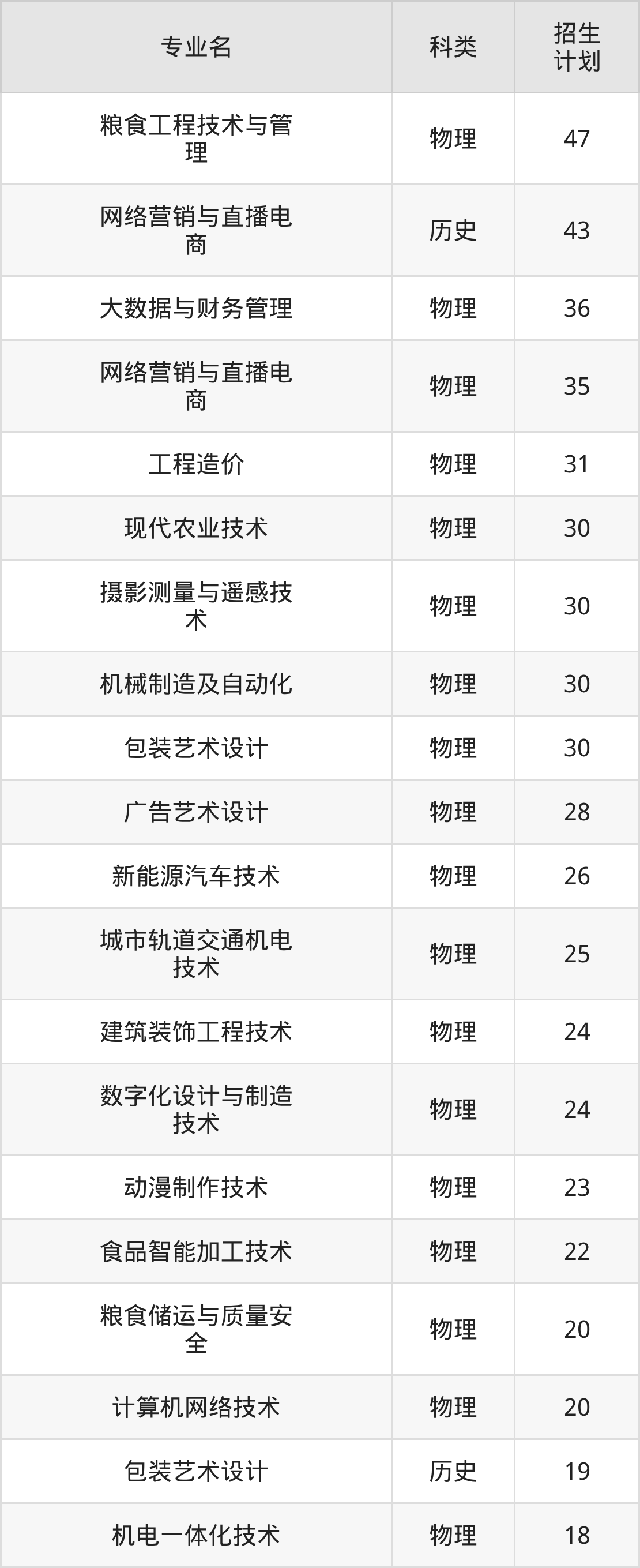 安徽粮食工程职业学院2025全国各省招生计划详情见下: