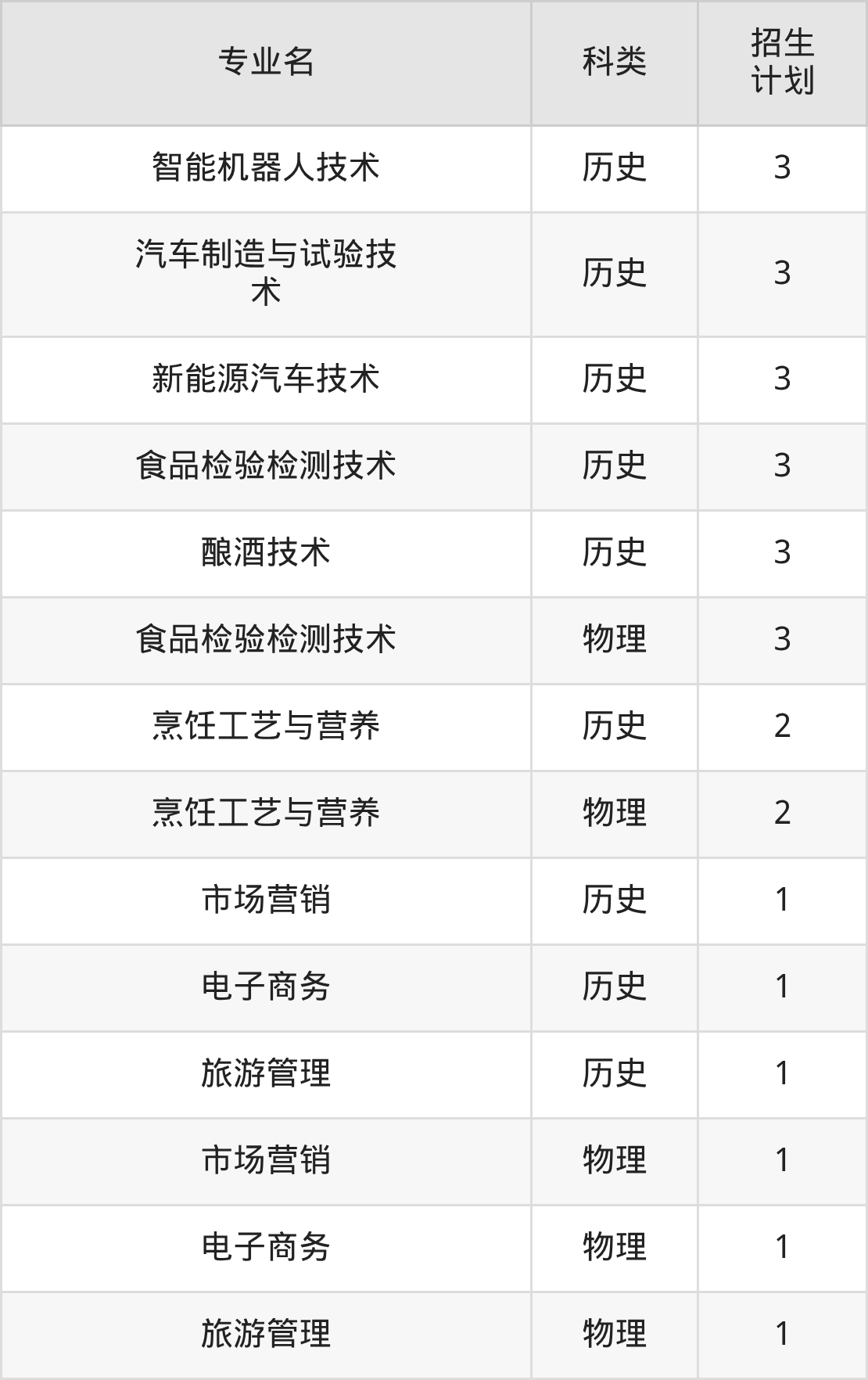 第三名:广东(16人),招生人数最多的专业是食品质量与安全(2人、历史类)。