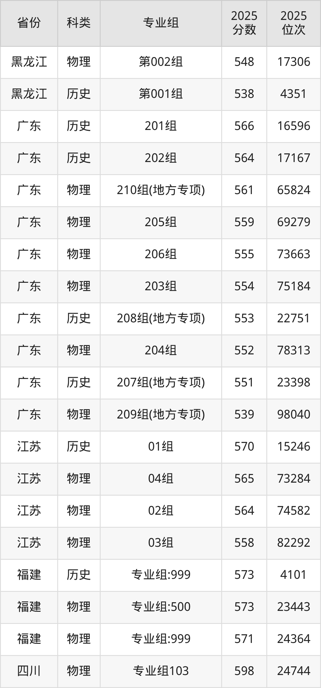 除上述省份外,汕头大学2025各省录取最低分详情见下: