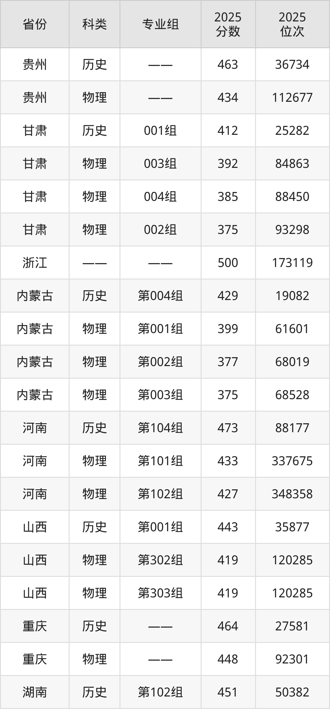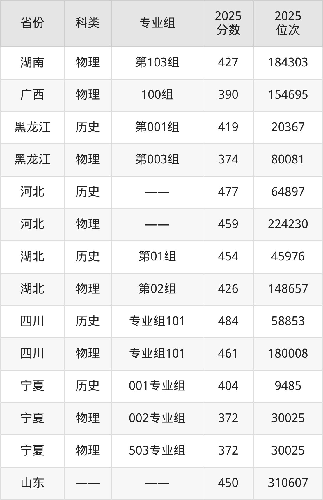 除上述省份外,银川科技学院2025各省录取最低分详情见下: