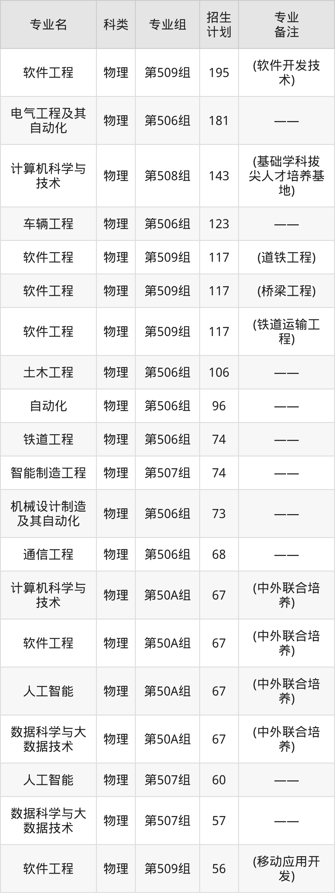 值得注意的是,华东交通大学在本科批招生,招生类型为物理类、历史类。篇幅有限,这里仅附上华东交通大学在江西省内招生计划详情: