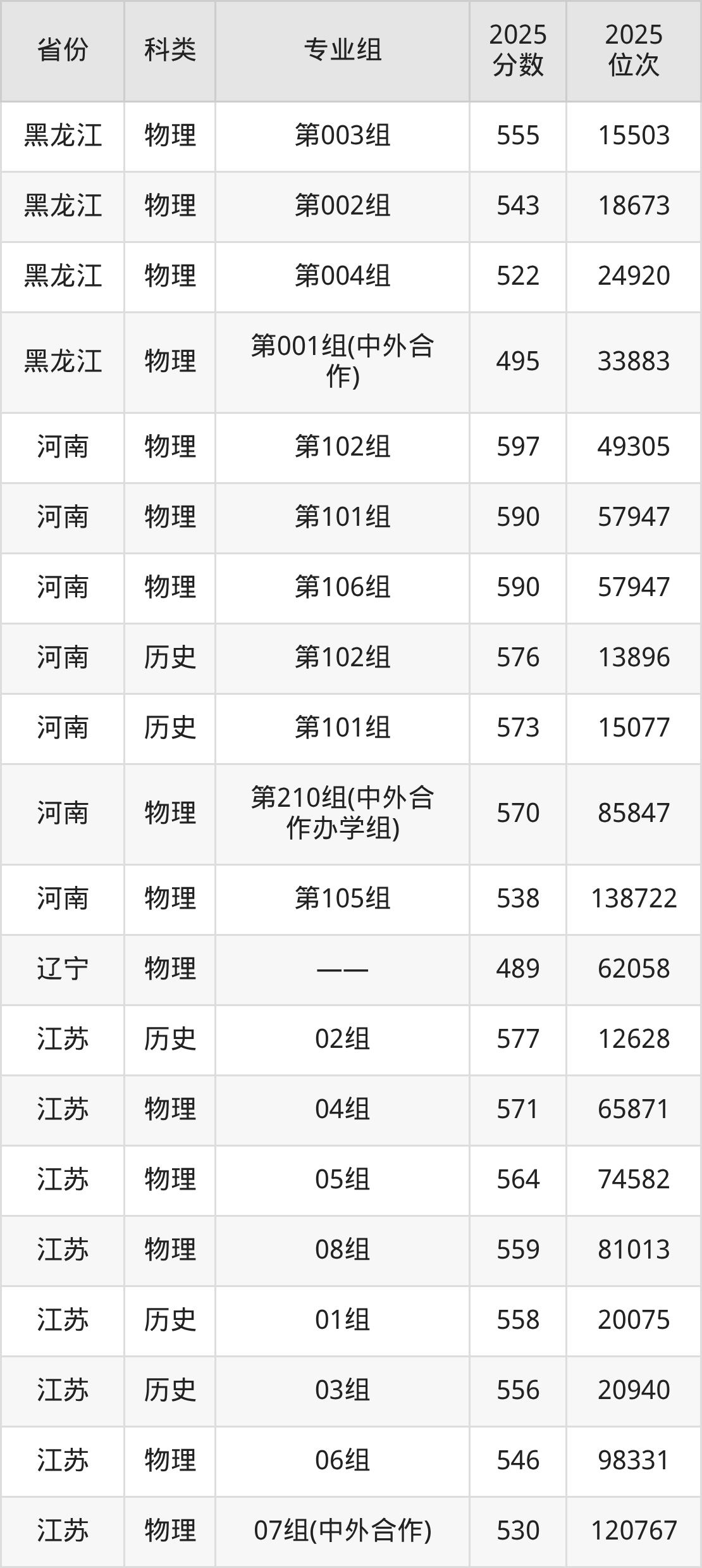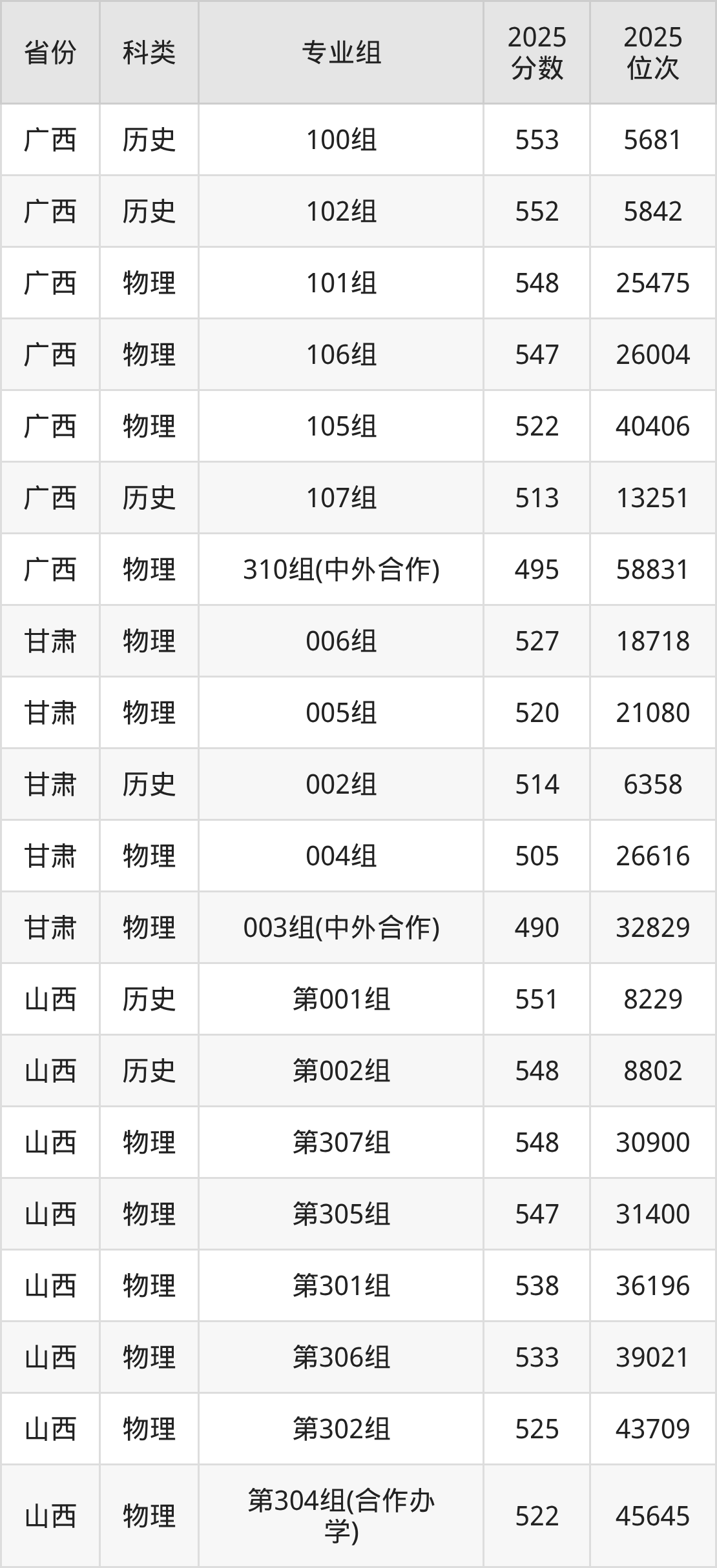 4、甘肃:最低分490分,对应最低分专业组为物理类003组(中外合作),位次32829名;