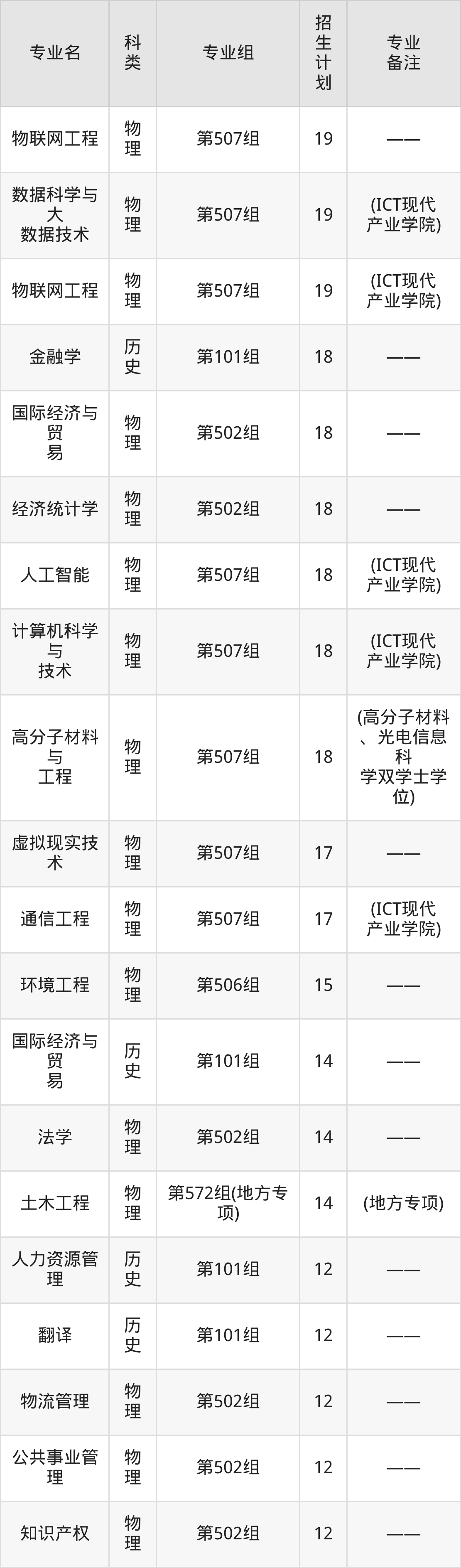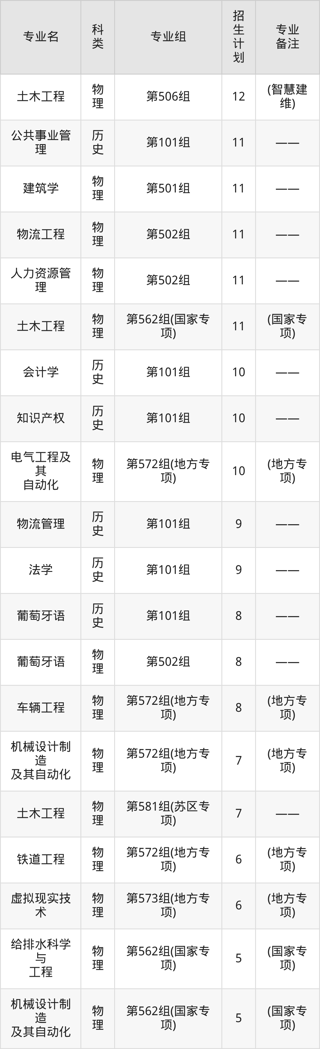 第三名:安徽(261人),招生人数最多的专业是土木工程(12人、物理类)。